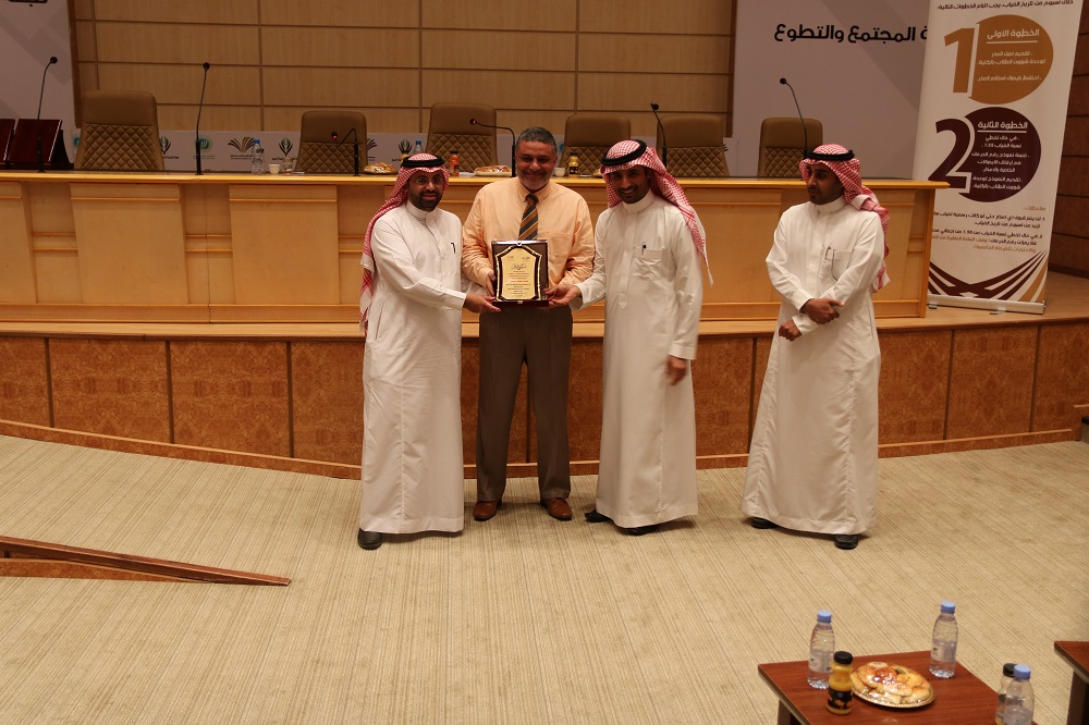 وفي ختام اللقاء كرم سعادة عميد الكلية المكلف الدكتور/ رائد بن عبدالله اليوسف مشرفي الأقسام الأكاديمية السابقين وهم كلاً من :