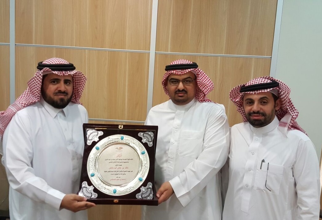 كرم عميد كلية الهندسة الدكتور محمد بن سعيد القحطاني اليوم الثلاثاء الموافق 10 / 8 / 1437 هـ بتكريم كلا من الدكتور خالد بن علي أبو حاصل وكيل الكلية والدكتور عوض الزبن عضو هيئة التدريس بقسم الهندسة الكهربائية نظرا لانتقالهما من الكلية. هذا وقد حضر التكريم أعضاء مجلس الكلية. وقد شكر عميد الكلية د محمد الزملاء على جهودهم متمنياً لهم التوفيق والسداد في حياتهم المقبلة .