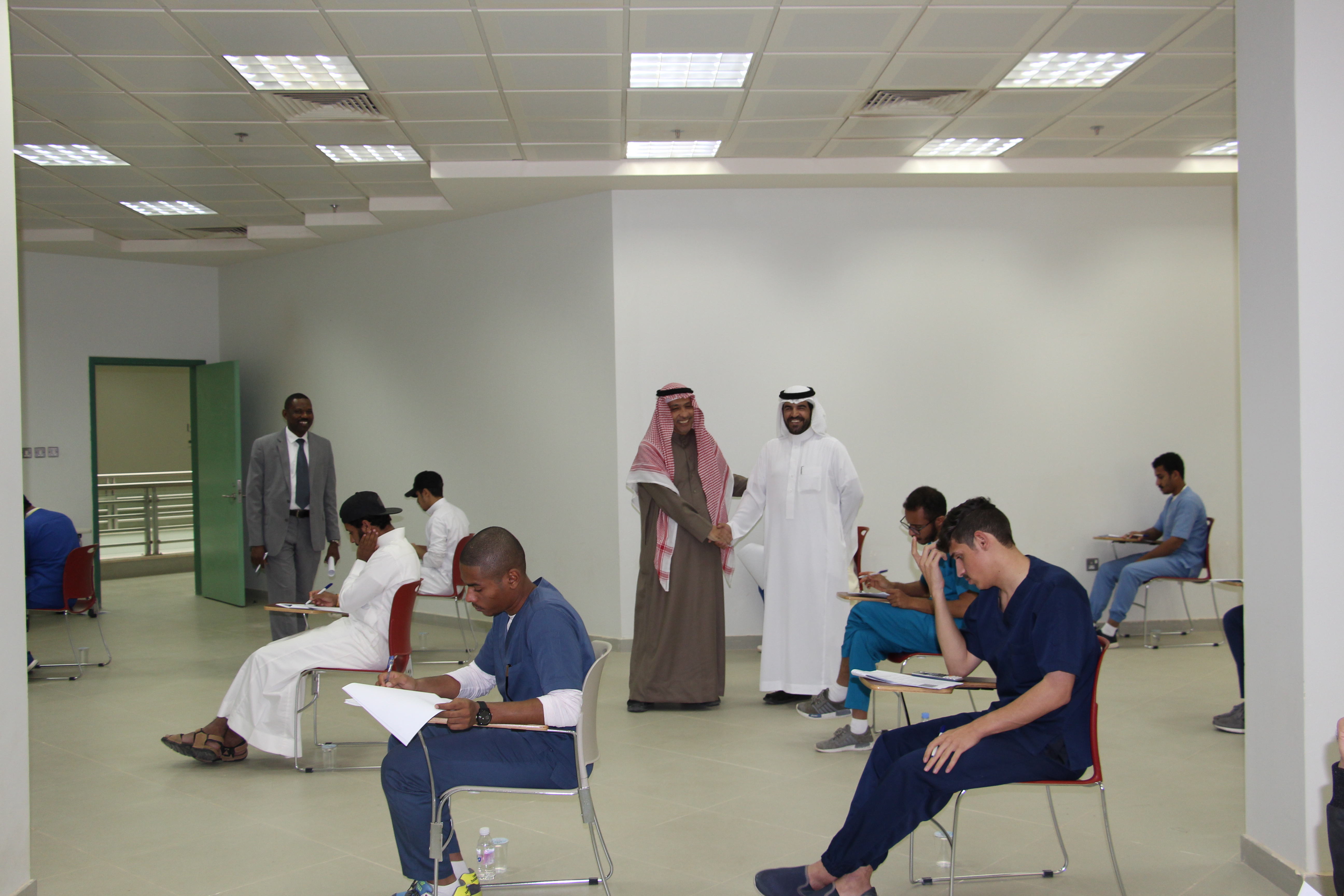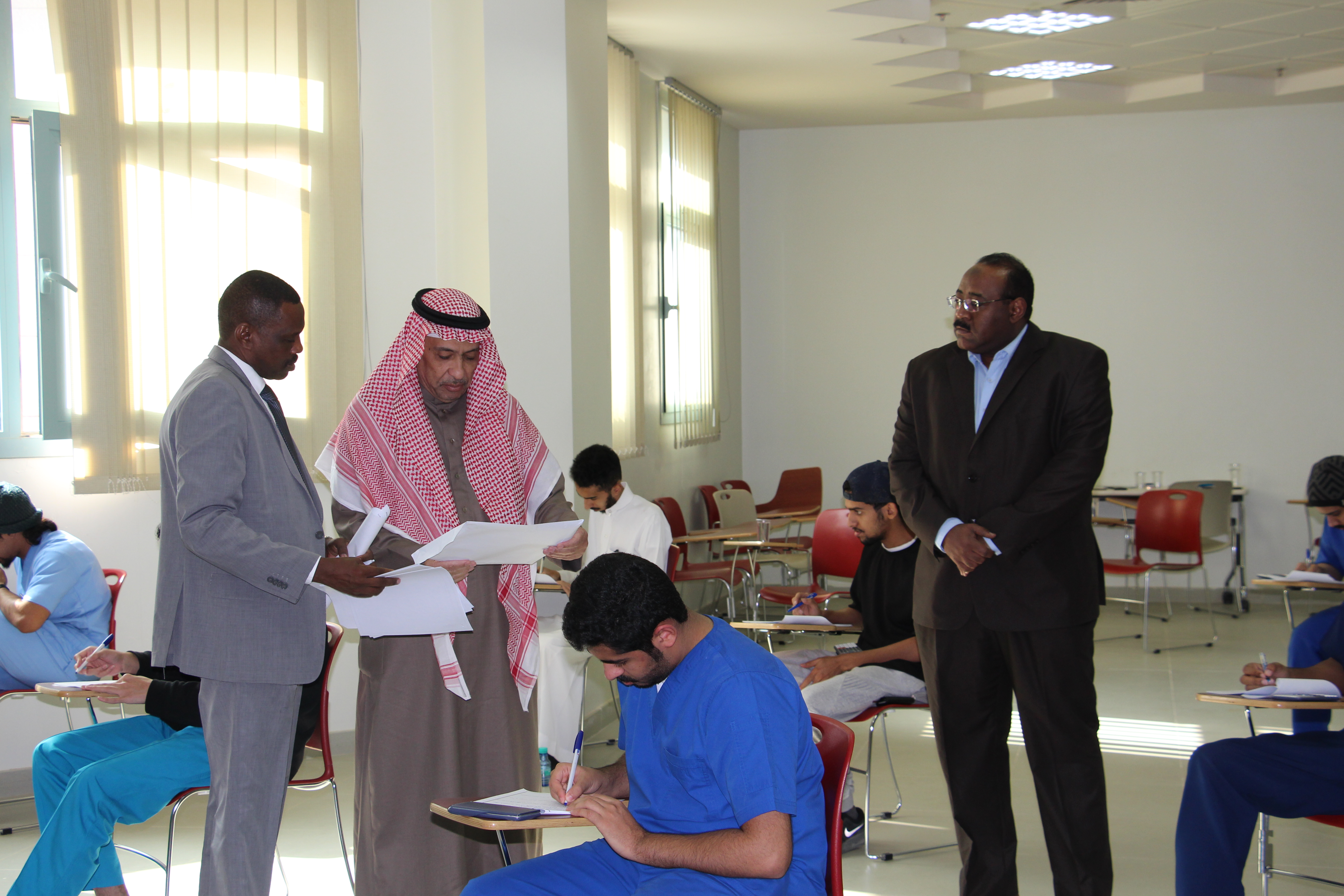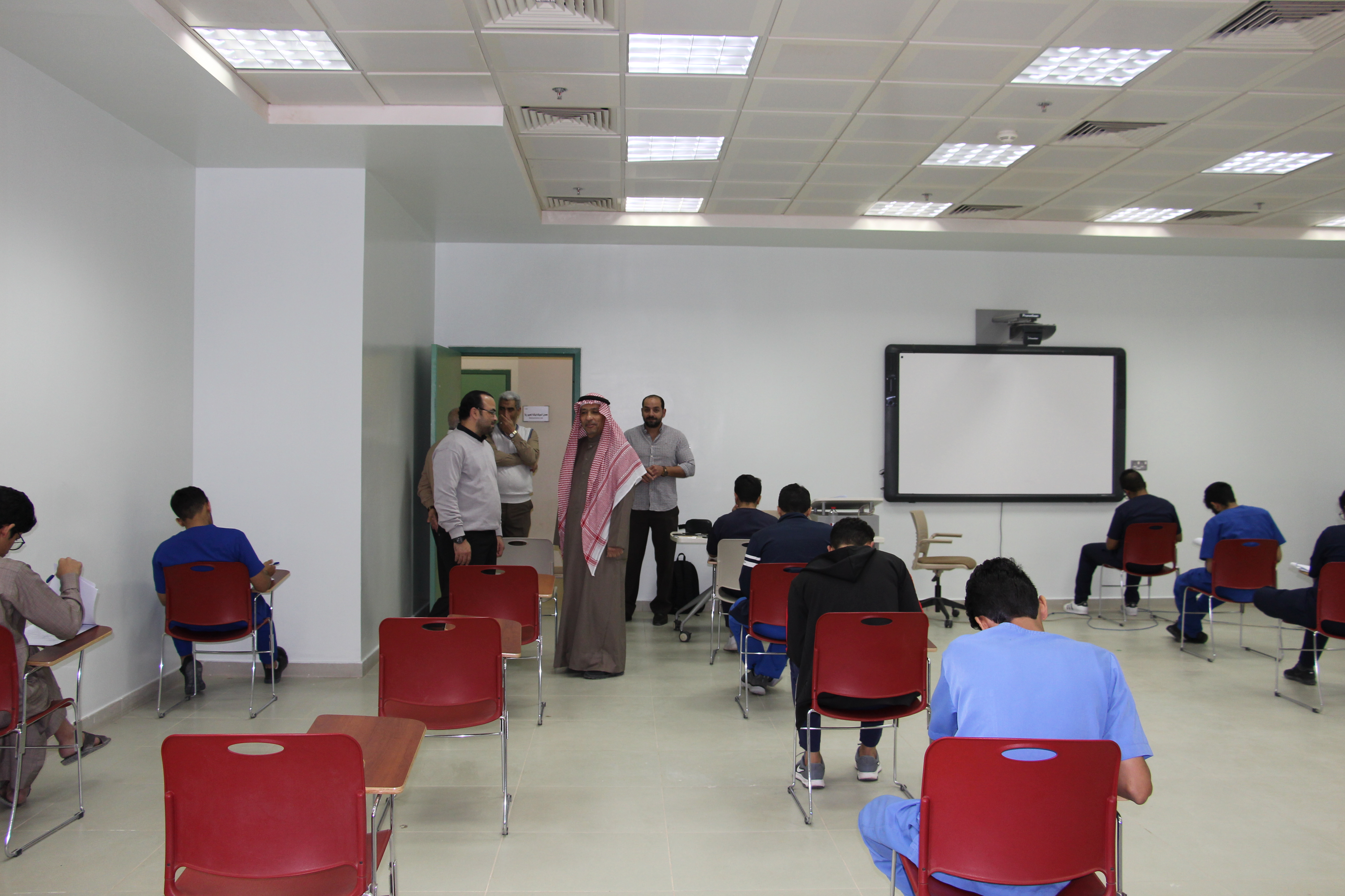 في إطار المتابعة المستمرة من سعادة عميد الكلية الأستاذ الدكتور / ماهر بن مفضي العنزي، قام سعادته بجولة تفقدية لقاعات الاختبارات بالكلية وأطلع على سير الاختبارات وجاهزية القاعات الدراسية، رافقه في الجولة سعادة الاستاذ الدكتور / أشرف توفيق أبو الحمد، ومدير الإدارة / ماجد بن فويز الدوسري، وذلك يوم الأثنين الموافق 10/4/1440هـ في تمام الساعة 10 صباحاً ،وقد أطلع على التجهيزات التي اتخذتها لجان الاختبارات بالكلية لإنجاح سير عملية الاختبارات وذلك بهدف توفير الأجواء المناسبة التي تضمن أداء الطلاب لاختباراتهم بكل يسر وسهولة.