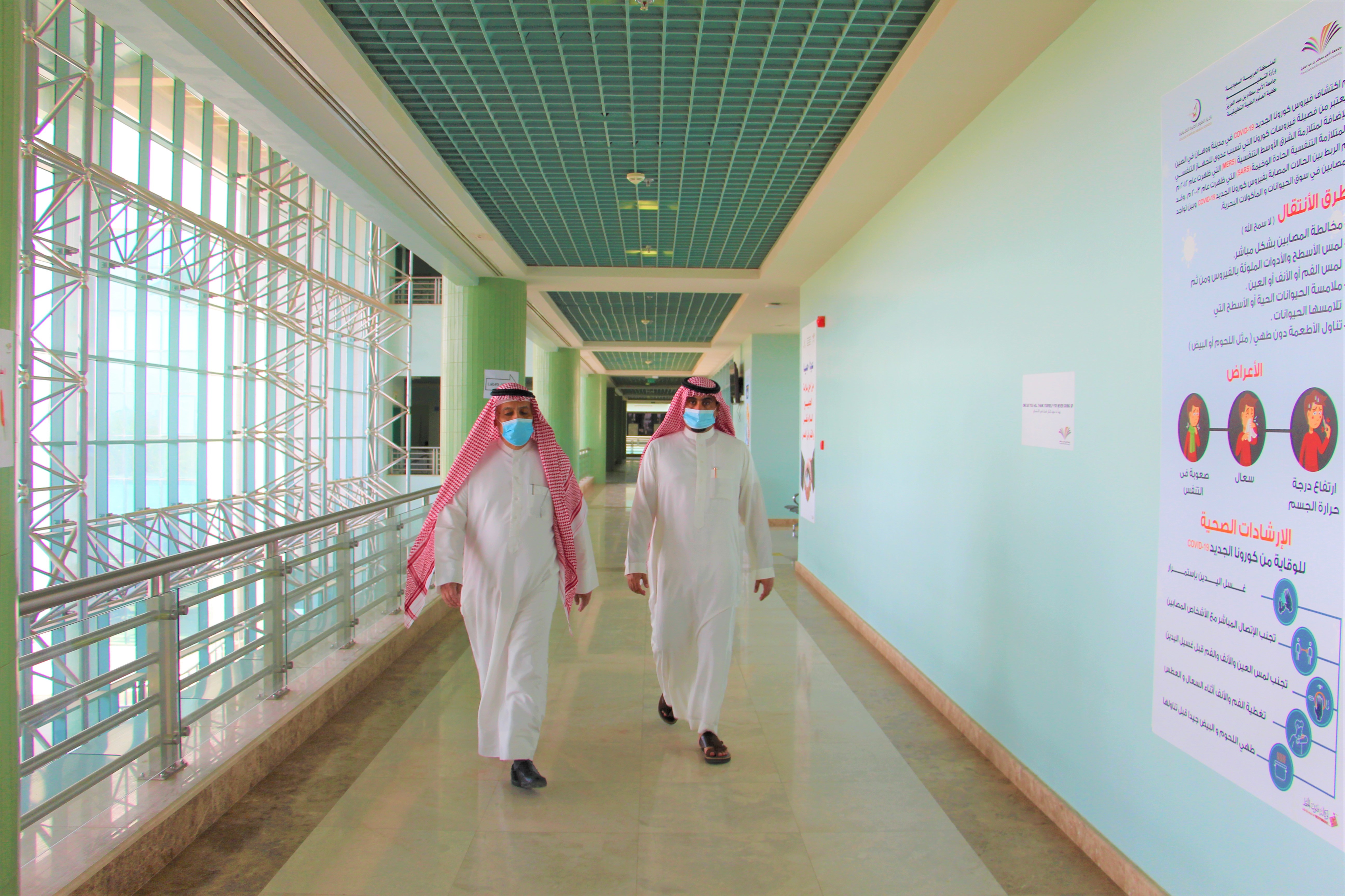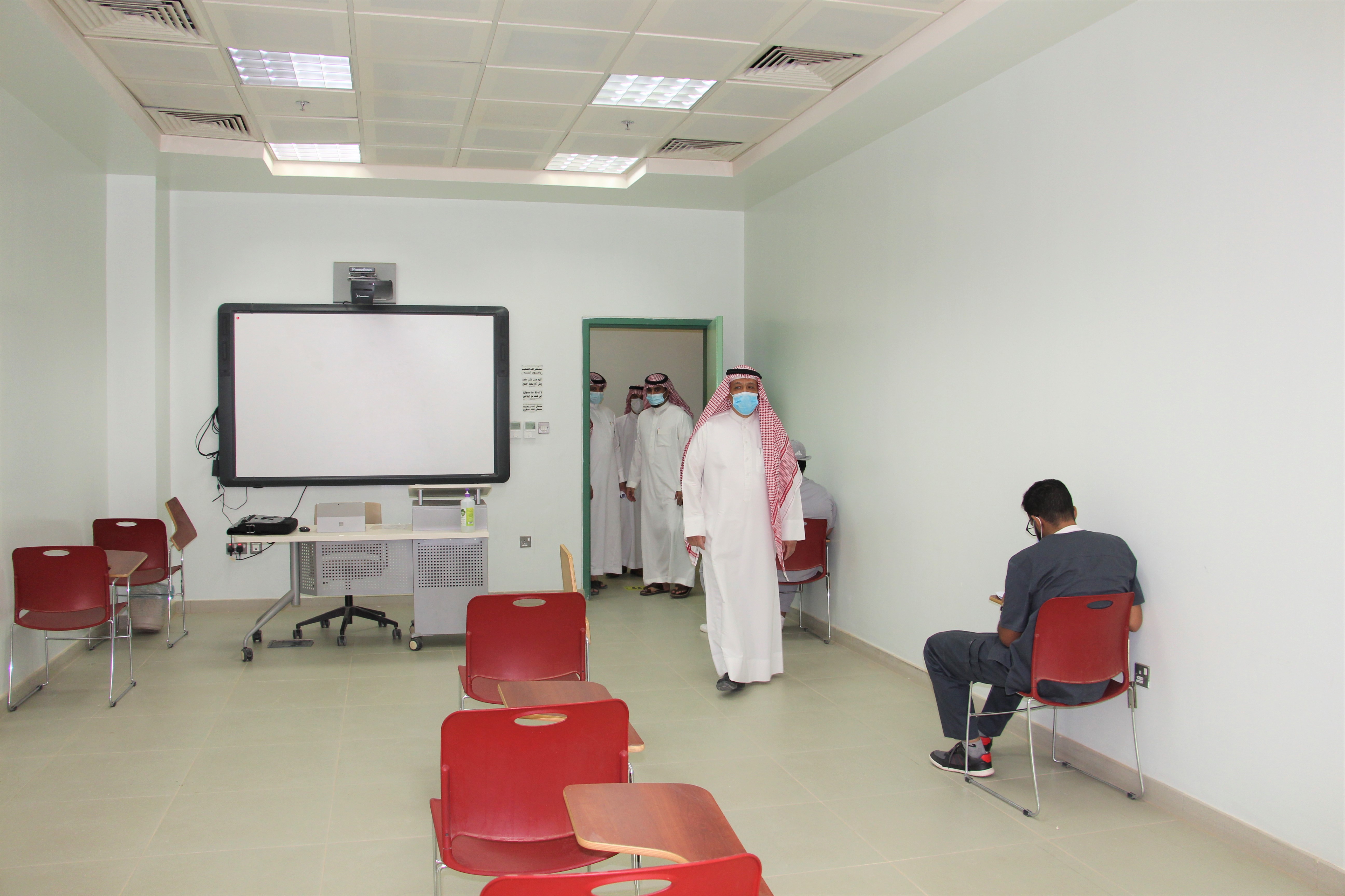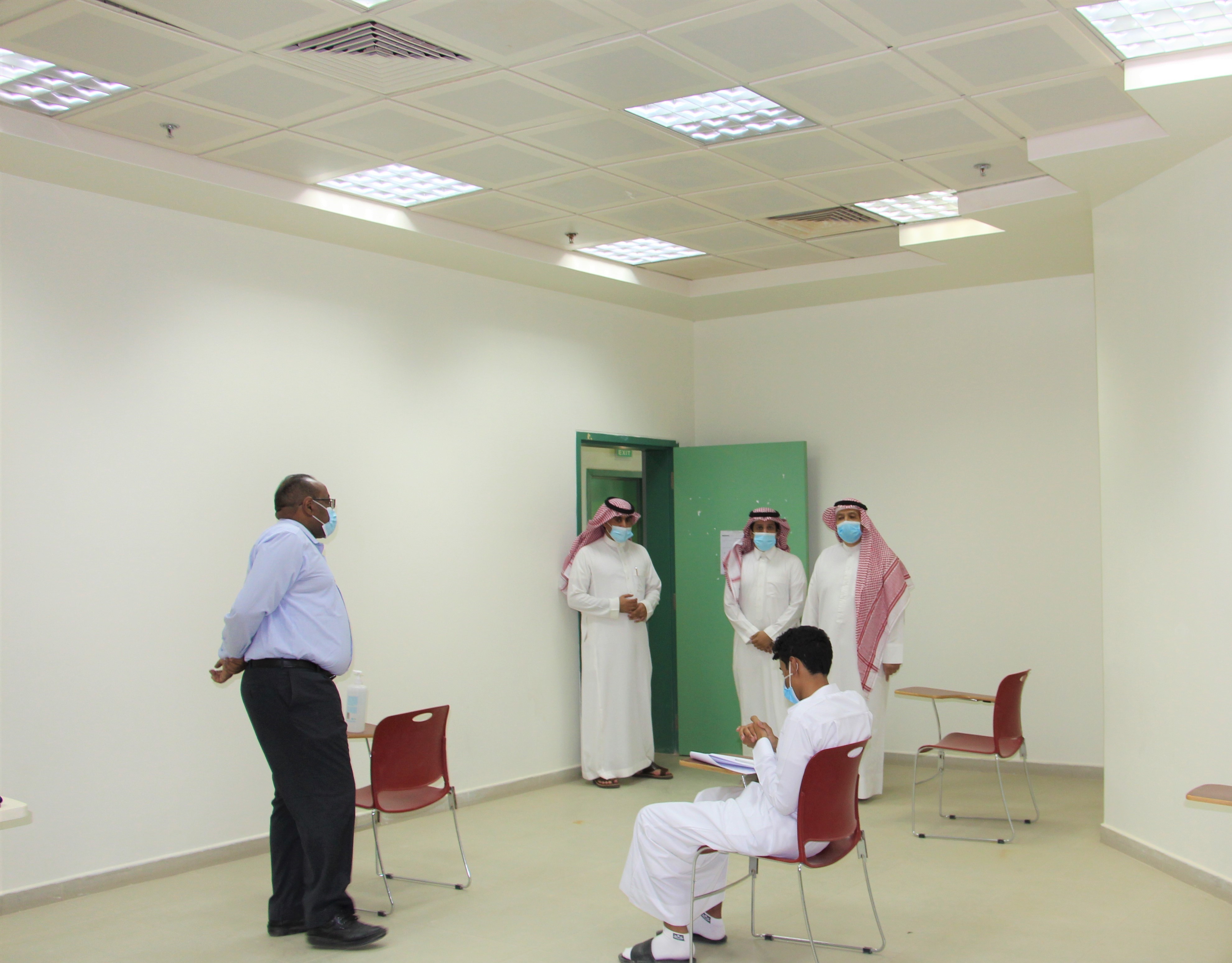 في إطار المتابعة المستمرة من سعادة عميد الكلية الأستاذ الدكتور / ماهر بن مفضي العنزي، قام سعادته بجوله تفقدية لقاعات الاختبارات الصيفية بالكلية وأطلع على سير الاختبارات وجاهزية القاعات الدراسية، رافقة في الجولة سعادة مدير إدارة الأستاذ / ماجد بن فويز الدوسري ، وذلك يوم الأثنين الموافق 1443/1/7هـ في تمام الساعة 10 صباحاً ،وكان في استقبالهم سعادة الدكتور / عبدالكريم بن شايع الدوسري رئيس قسم المختبرات الطبية ،وقد أطلع عميد الكلية على التجهيزات التي اتخذتها لجان الاختبارات بالكلية بأخذ جميع الاحترازات الوقائية ضد مرض فيروس كورونا كوفيد 19،ولإنجاح سير عملية الاختبارات وذلك بهدف توفير الأجواء المناسبة التي تضمن إداء الطلاب لاختباراتهم بكل يسر وسهولة.