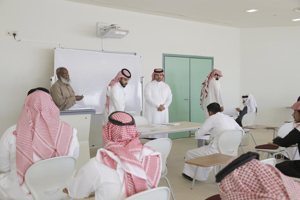 حيث اطلع سعادته على آلية العمل وسبل تحقيق الراحة للطلاب بما يمكنهم من أداء الاختبارات بكل يسر وسهولة، كما تابع الدكتور الدوسري لجان الاختبارات وطريقة توزيع الطلاب وانتظامهم في مقاعدهم .