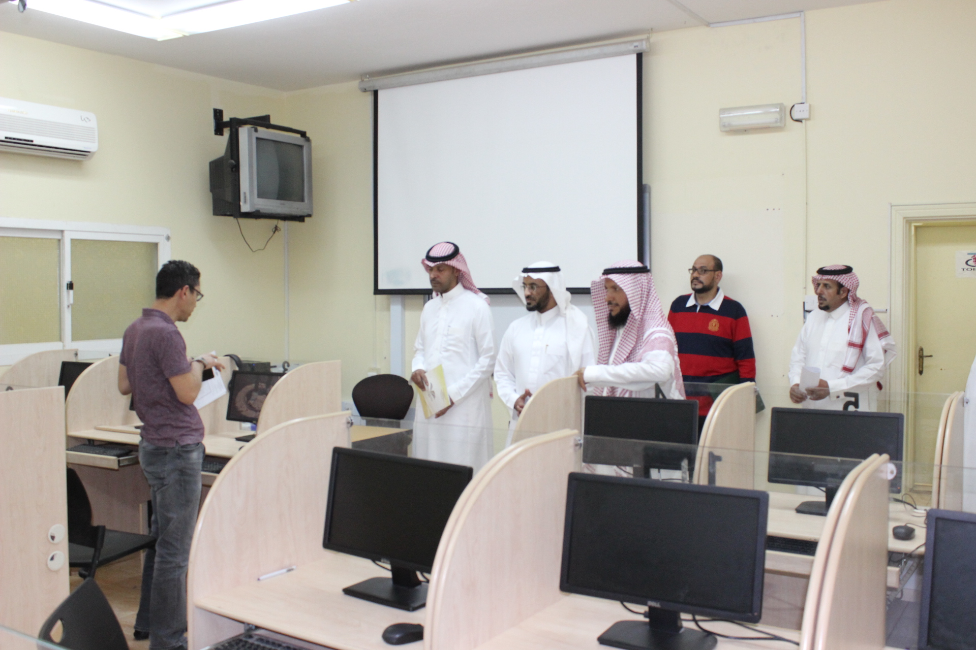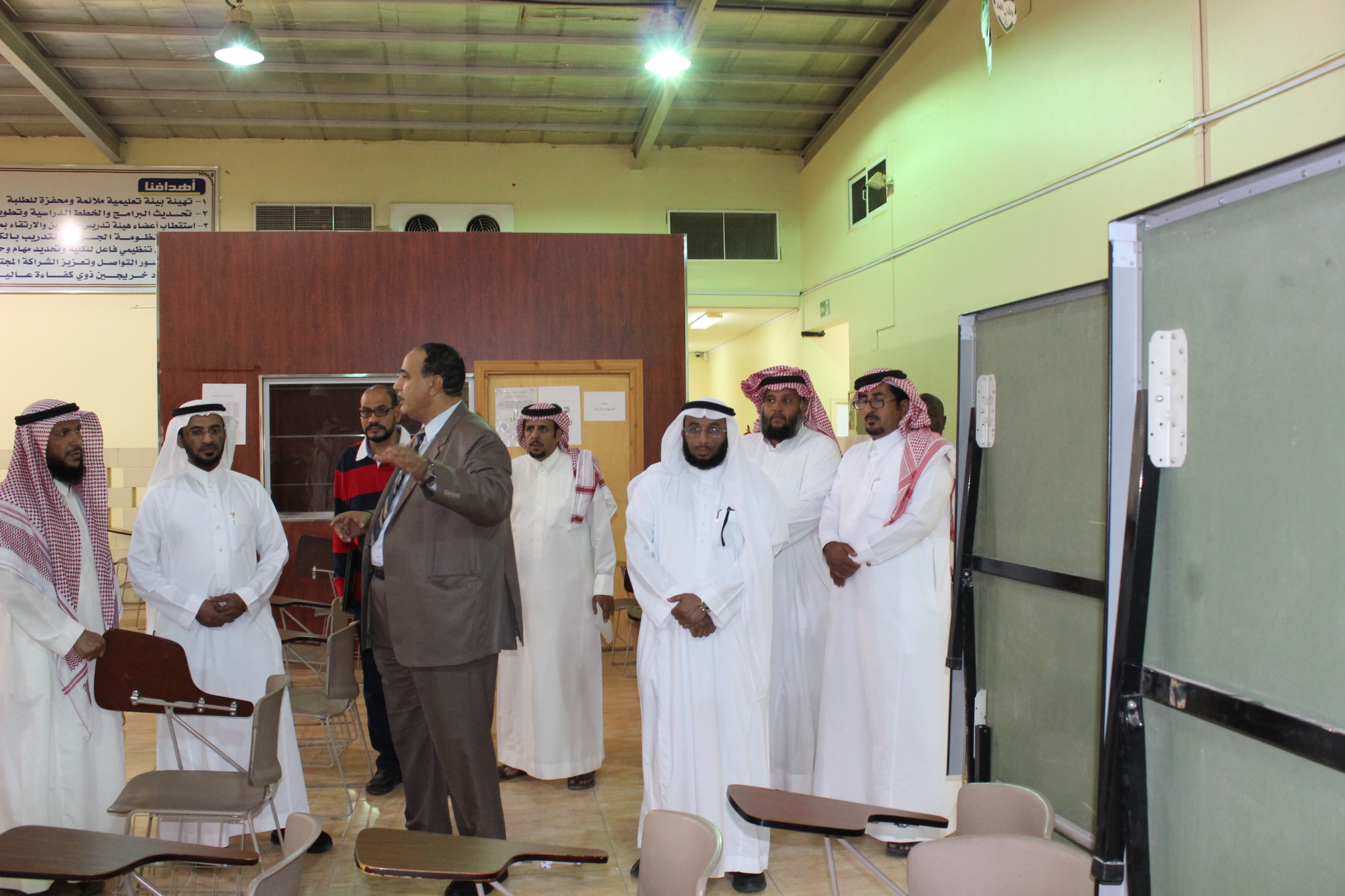 وبعد الاجتماع تم أخذ جوالة تفقدية شاملة على مبنى الكلية ومعاملها, وفي نهاية الزيارة قدم عميد الكلية شكره وتقدير لسعادة مدير عام مدير الشؤون الادارية والمالية على زيارتة للكلية وعلى تجاوبه مع كل ما فيه تطوير الكلية والرقي بمستوى خدماتها التعليمية .
