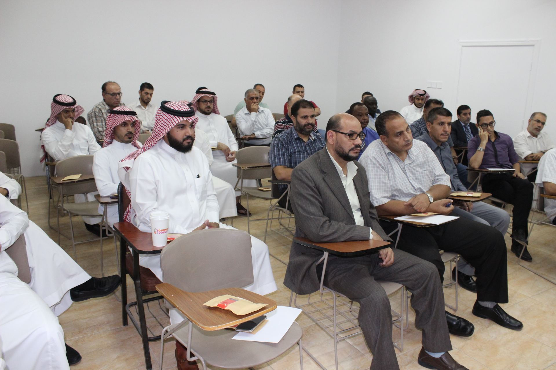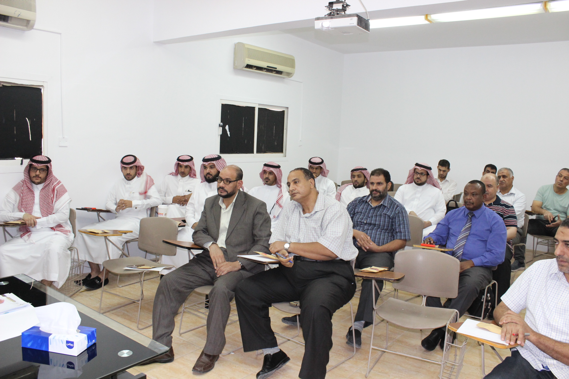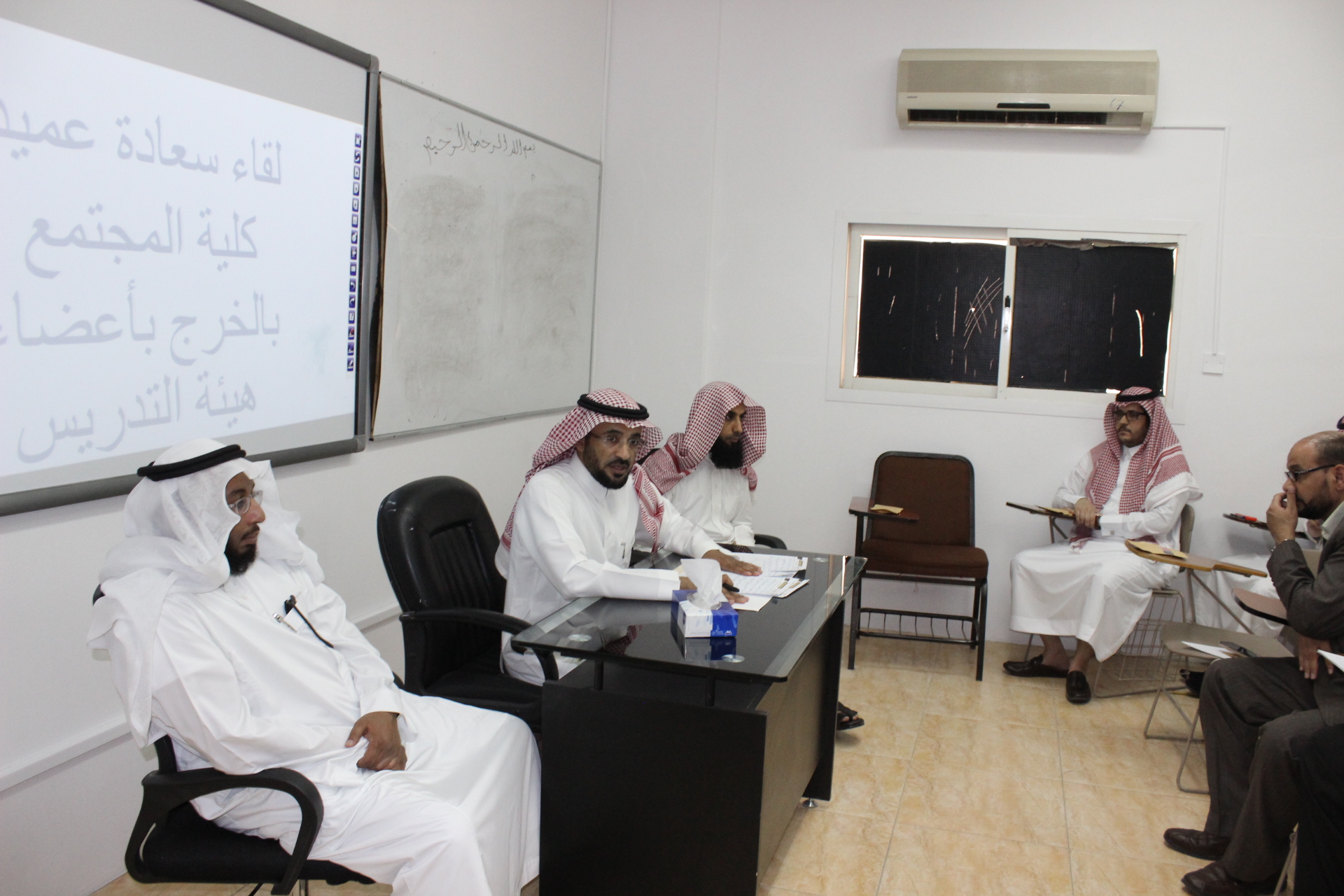 ثم رحب سعادته بأعضاء هيئة التدريس الجدد، واستعرض سعادته جملة من النقاط التي تهم الكلية والعملية التعليمية والحث على العمل بروح الفريق الواحد للسعي بتطوير الكلية والاهتمام بالطلاب وتحفيزهم لبذل الجهد والمثابرة لتحقيق الأهداف التي من أهمهما تأهيل كوادر تخدم في سوق العمل بما يحقق رؤية الجامعة ورسالتها. كما أشار سعادته إلى ضرورة اهتمام عضو هيئة التدريس بالطلبة المتدربين والاهتمام بهم لصقل مواهبهم وتهيئتهم لسوق العمل.