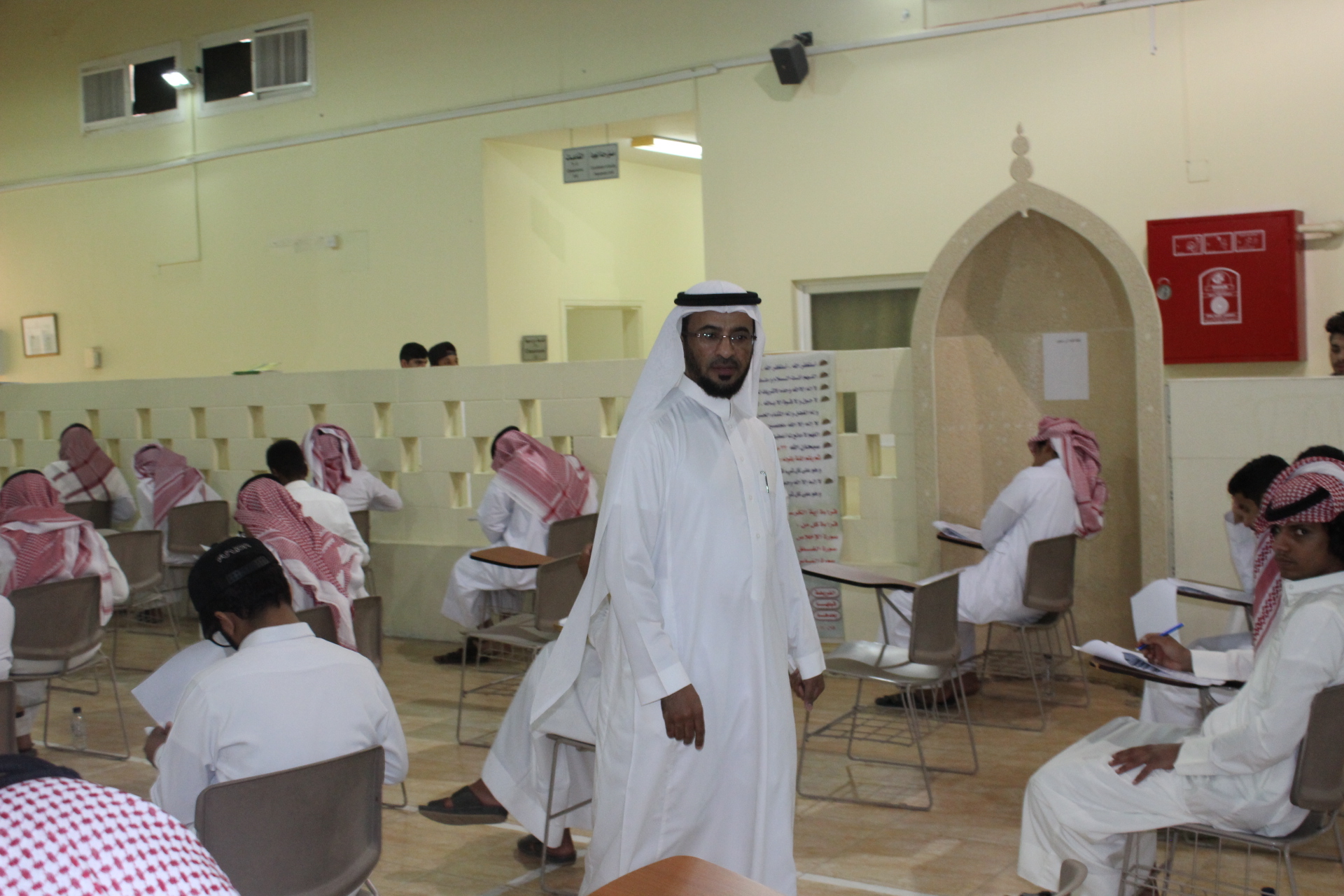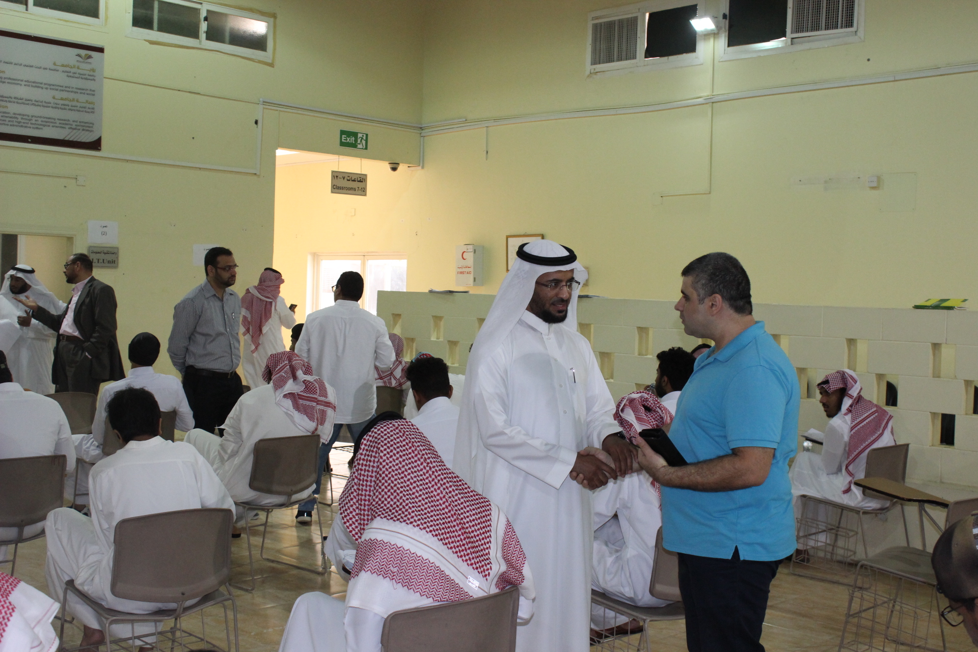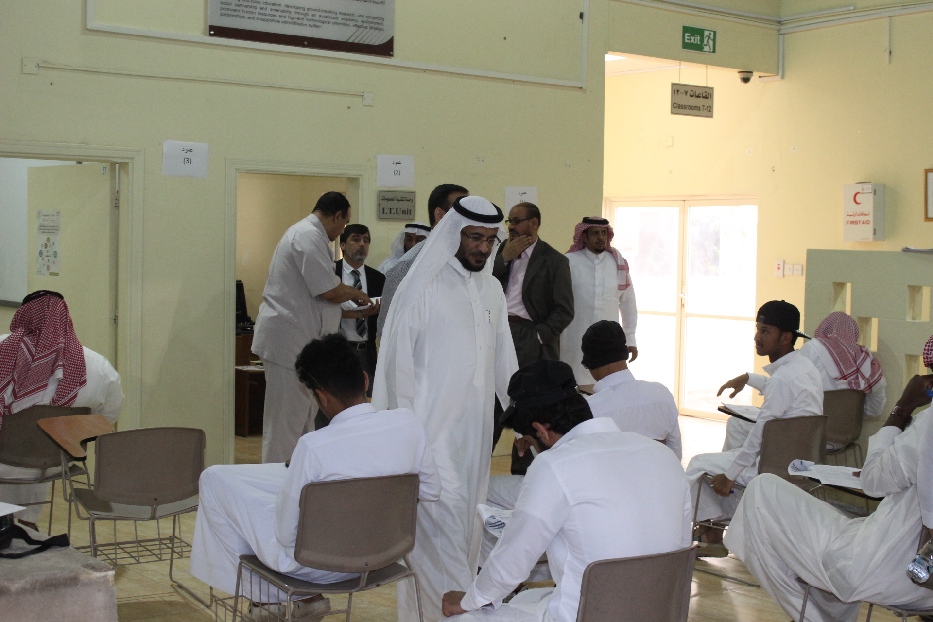 انطلقت يوم الأحد 9/8/1440 هــ الاختبارات النهائية لطلاب وطالبات كلية المجتمع بالخرج للفصل الدراسي الثاني للعام الجامعي 1439/1440 هـ،بإشراف واهتمام من سعادة عميد الكلية الدكتور/ حمد بن عبدالله القميزي ومتابعة كل من وكيل الكلية لشؤون التعليمية والأكاديمية الدكتور/ ناصر بن راشد الشيحان ووكيلة الكلية الدكتورة / أمينة المشحن، حيث زار مبنى الطالبات للتأكد من الاستعدادات اللازمة لبدء الاختبارات،واطلع بشكل مباشر على سير اختبارات الطلاب بالقاعات الرئيسية للامتحانات، كما اطلاع على نماذج من اختبارات الطلاب والتحدث معهم في أساليب تقديم الاختبارات، وتمنى لجميع الطلاب والطالبات التوفيق والنجاح، وأكد سعادة عميد الكلية أن متابعة سير الاختبارات تحظى بمتابعة شخصية من معالي مدير الجامعة الأستاذ الدكتور/ عبدالعزيز الحامد واهتمام خاص من سعادة وكيل الجامعة للشؤون التعليمية والأكاديمية المكلف الدكتور/ عبدالرحمن الخضيري، وأكد سعادته التزام الكلية بجميع الأنظمة والتعليمات التي تؤكد عليها لوائح الاختبارات، كما أكد على الطلاب والطالبات ضرورة الالتزام بالتعليمات الصادرة في هذا المجال، وأوصاهم بالجد والاجتهاد، ليقطفوا ثمرة جهدهم خلال هذا الفصل.