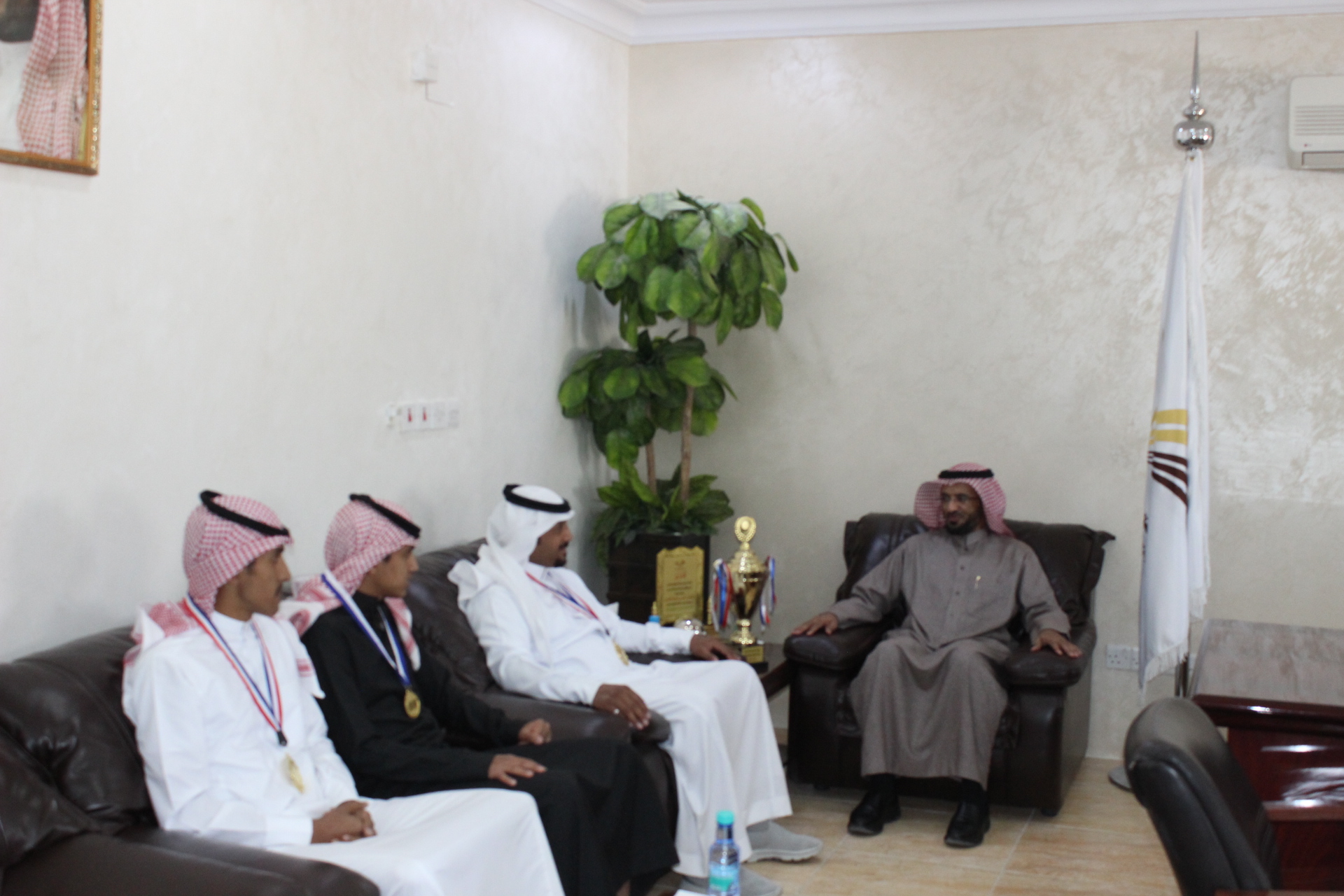 وقد حرص سعادة عميد الكلية الدكتور/ حمد بن عبدالله القميزي على تكريم فريق الكلية بحضور مدرب الفريق الأستاذ/ عبدالله إبراهيم اليحياء مشرف النشاط الرياضي بالكلية وأكد سعادة العميد على إن الكلية تشجع وتدعم دائما الطلاب المتميزين في مختلف الأنشطة ، كما حثهم على ضرورة المشاركة في كافة الفعاليات التي تنظمها الجامعة.