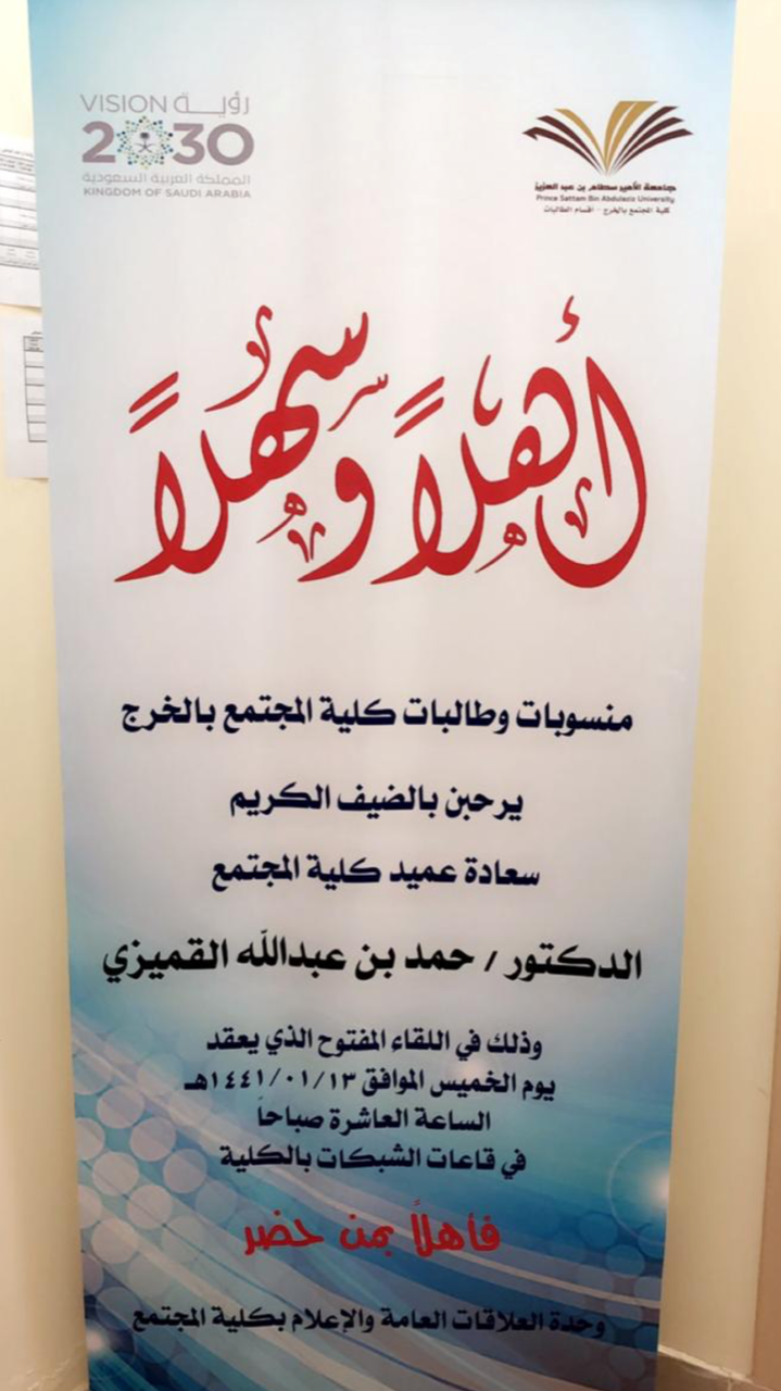 كما وضح سعادته تاريخ نشأة الكلية وكيفية انضمامها لهذا الصرح الشامخ جامعة الأمير سطام بن عبد العزيز. ثم قدم سعادته عدداً من التوجيهات التي تساعد الطالبة على التفوق والنجاح في دراستها، وبين سعادته بعض الأمور التي تساعدهن على تحقيق وظائف مناسبة لهن في القطاعات الحكومية والخاصة.