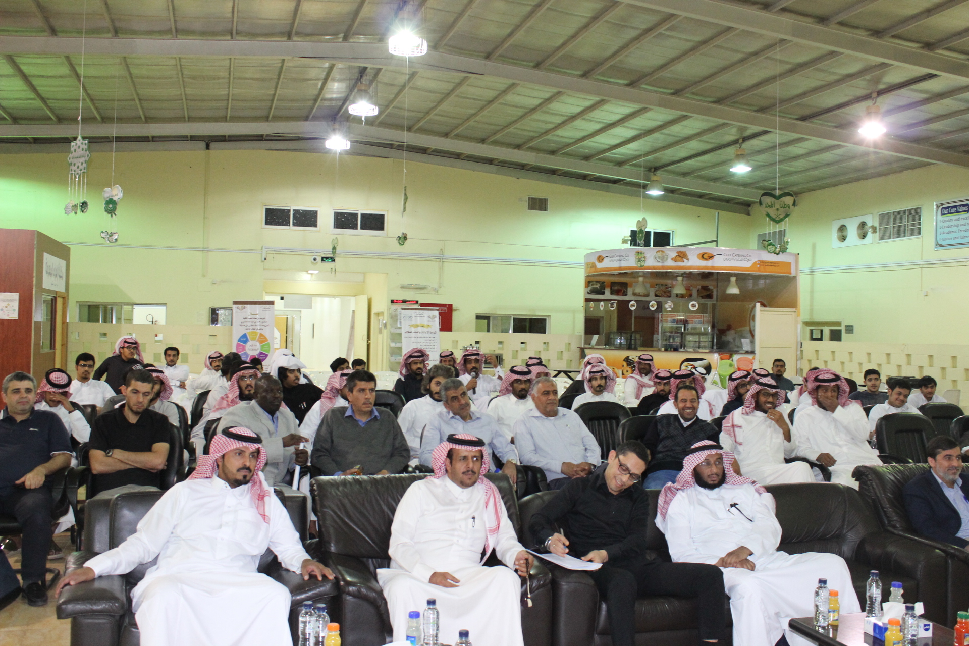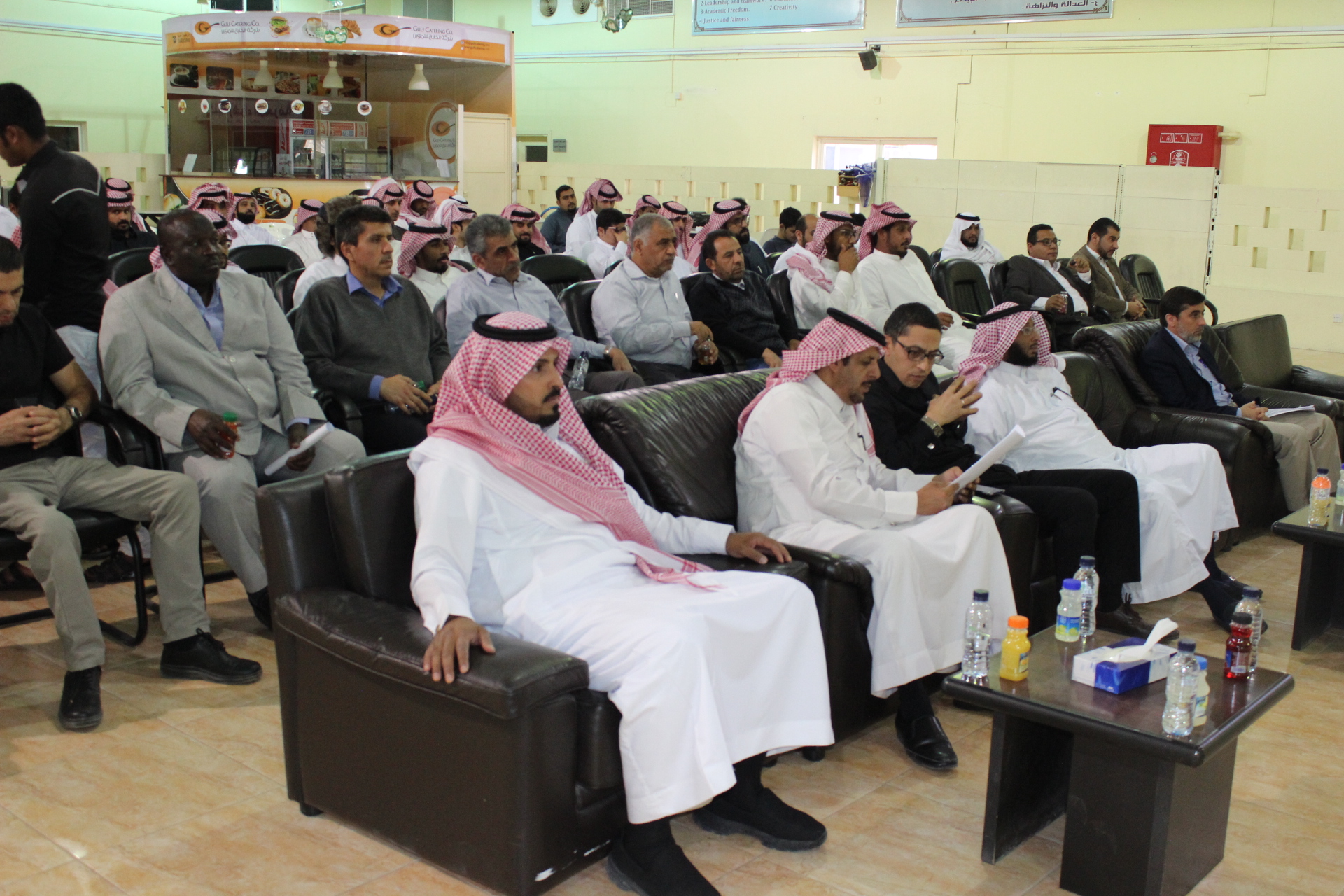 وأكد سعادة على ضرورة معرفة الطلاب لتاريخ وحاضر الكلية التي ينتمون إليها ، إذ أن الانتماء والولاء ركيزتان أساسيتان للتفوق. كما أشار سعادته إلى أهمية برنامج الأمن والسلامة باعتباره أول برنامج معتمد يمنح شهادة الدبلوم على مستوى المملكة مما جعله إحدى أولويات الجامعة. وبيَّن الدكتور القميزي أن أفاق التوظيف والترقيات في هذا التخصص واسعة لتشمل كل القطاعات الحكومية والخاصة ، إلا أن ذلك مترتب عليه التحصيل العلمي الفعلي للطلاب ومدى حرصهم على اكتساب المهارات المدرجة في مخرجات التعلم لمقررات البرنامج.