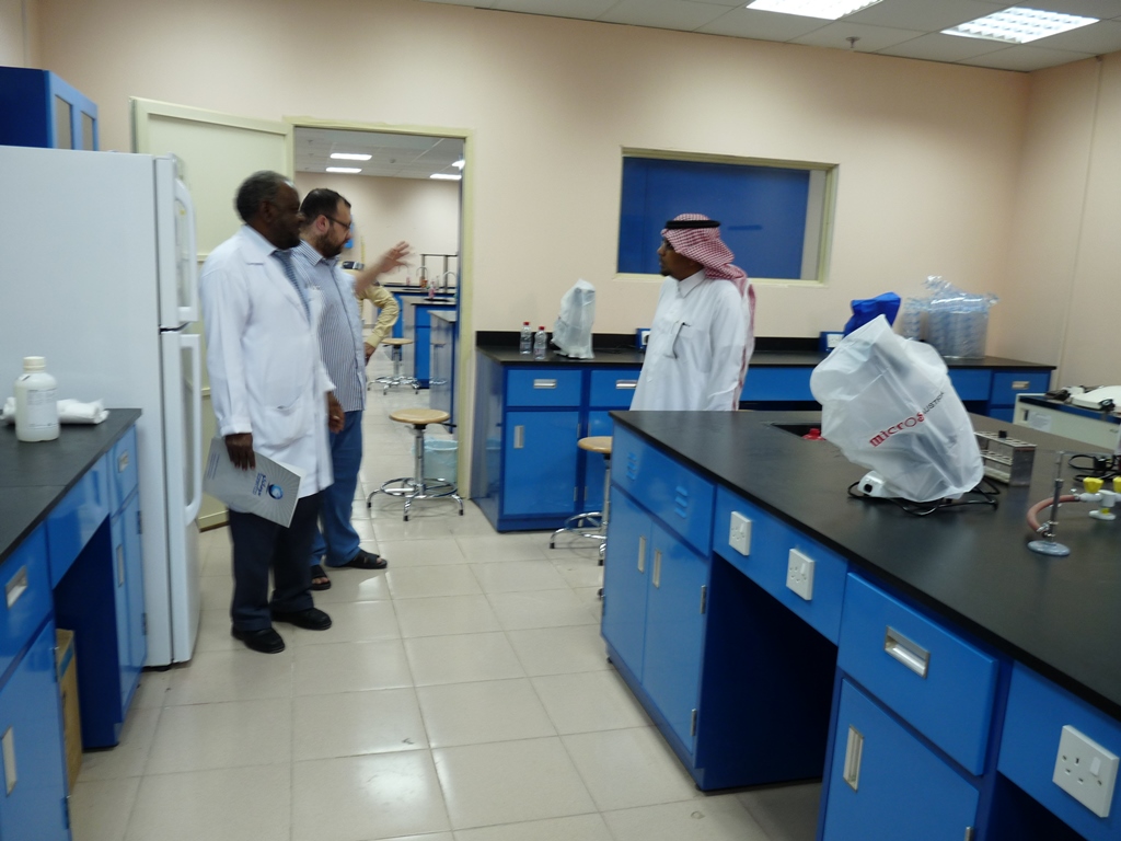 قام عميد كلية الصيدلة أ.د.خالد بن محمد الخرفي بجولة تفقدية حول المعامل والمختبرات الجديدة ومستودعات الزجاجيات والكيماويات لقسم الطالبات بعد تجهيزها وذلك في الفترة المسائية بعد إنتهاء دوام الطالبات يوم الاربعاء الموافق 13\5\1436ه وبرفقة كل من المحاضر عبدالفتاح بشير والمحاضر محمد ايمن السلقيني والاستاذ فهد الموسى وذلك للوقوف على التجهيزات النهائية التي تمت في معامل الطالبات ،حرصا منه على توفير بيئة تعليمية أكاديمية تضمن إعداد وتخريج كوادر صحية ذات مهارات عالية قادرة على التنافس وتغطية احتياجات سوق العمل ، والتي تجعل الطالبات متهيئات نفسيا ومهنيا بالانتقال من التدريب المعملي بالكلية إلى التدريب الميداني بالمرافق الصحية بكل يسر وسهولة.