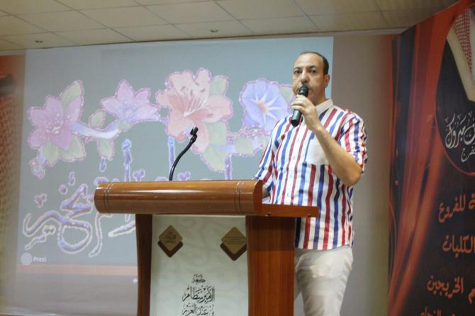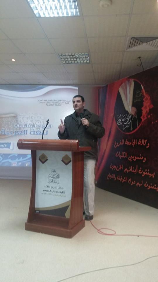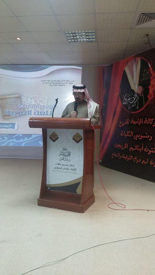 وإيماناً بما للغة من قيمة وميزة وبمناسبة اليوم العالمي للغة العربية , أقام قسم اللغة العربية بكلية الآداب والعلوم بوادي الدواسر وبمشاركة من وحدة شؤون الطلاب احتفالية كبيرة بمسرح الكلية تحت رعاية د. ناصر المهيزع عميد الكلية وحضور حشد كبير من أعضاء هيئة التدريس وطلاب الكلية .