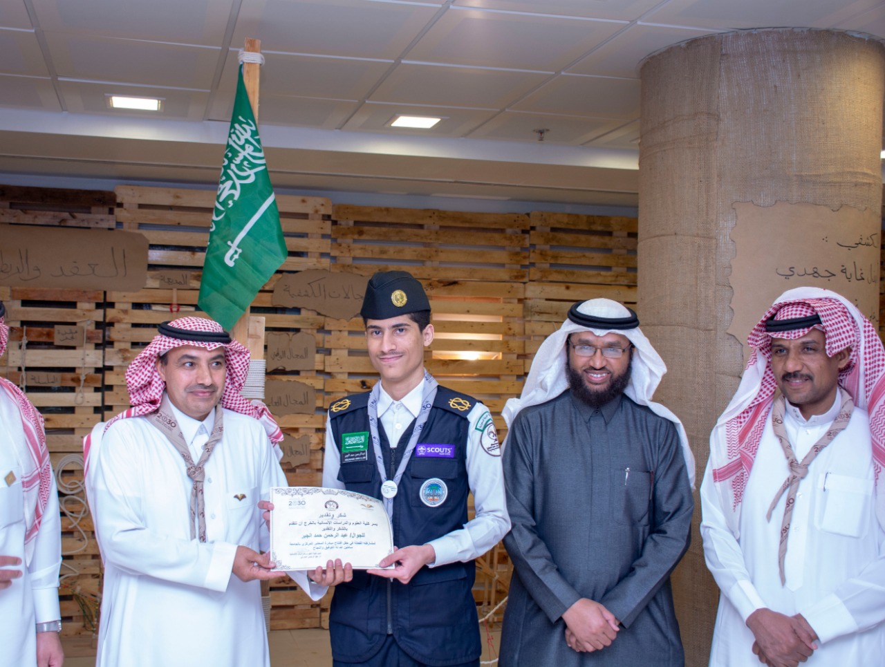 وفي نهاية الجولة كرم الدكتور ثلاب الشكره الطلاب المتميزين من الجوالة والتي كان لهم مشاركات خارجية من خلال المشاركة في دورات تدريبية كشفية حصلوا من خلالها على شهادات وشارات كشفية.