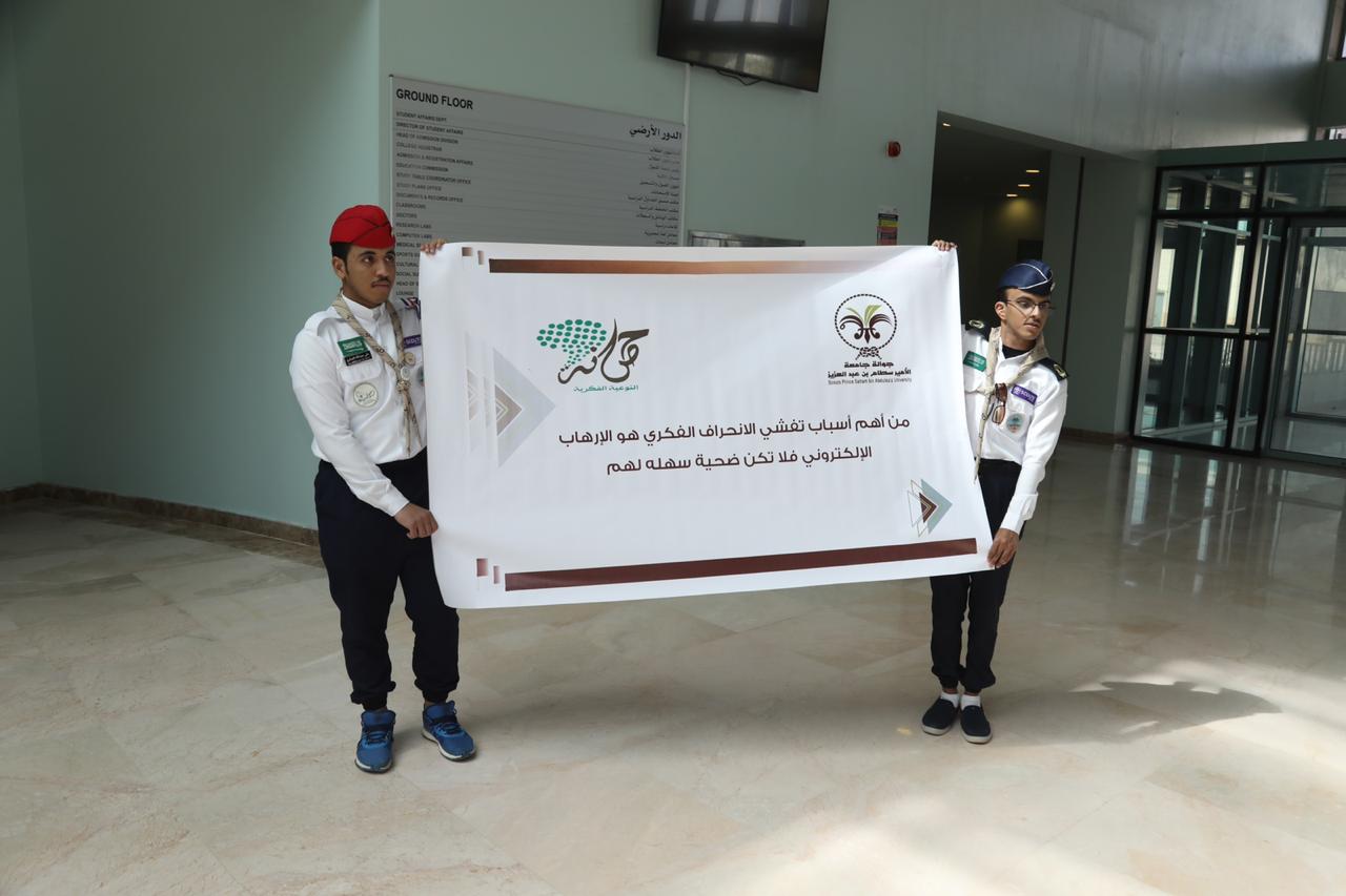 من جهته عبر عميد شؤون الطلاب عن بالغ شكره لوكالة عمادة شؤون الطلاب للأنشطة الطلابية ممثلة بوحدة النشاط الكشفي على الجهود التي بذلوها لتجهيز المعرض وتهيئة , ليكون منصة لتوعية منسوبي الجامعة وطلابها من المخاطر التي تهدد الأمن الفكري.