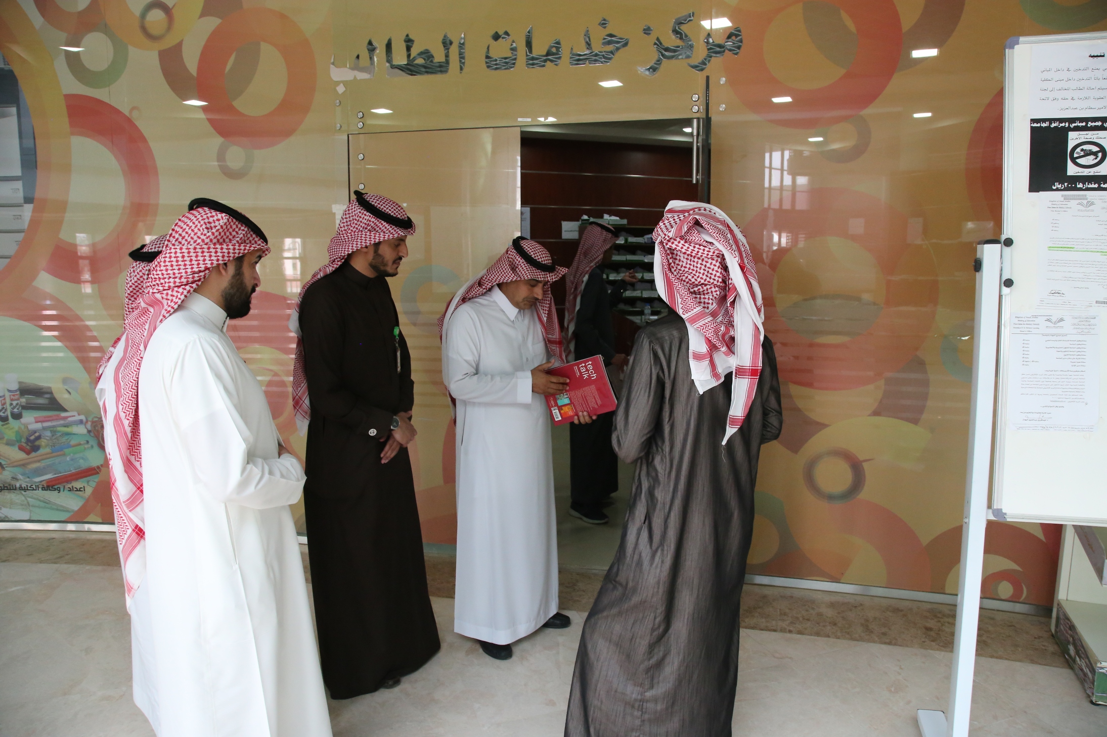 قام عميد شؤون الطلاب الدكتور ثلاب بن عبدالله الشكرة اليوم الاثنين 1 / 5/ 1440 هـ بزيارة تفقدية لمراكز الخدمات الطلابية (الكافتريا والكوفي - مراكز التصوير وبيع الكتب) بالمدينة الجامعية بالخرج يرافقه وكيل عمادة شؤون الطلاب للخدمات الطلابية والإسكان الدكتور عبدالله بن سعود الشتيلي .