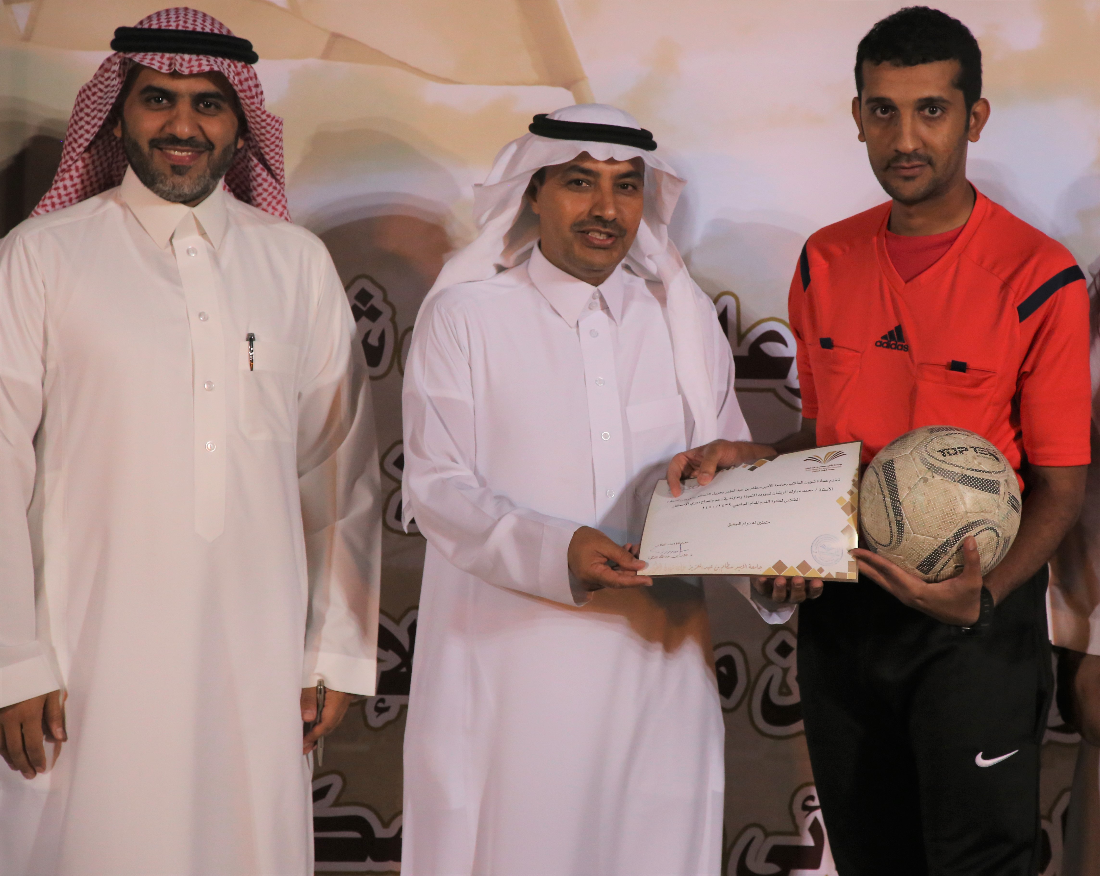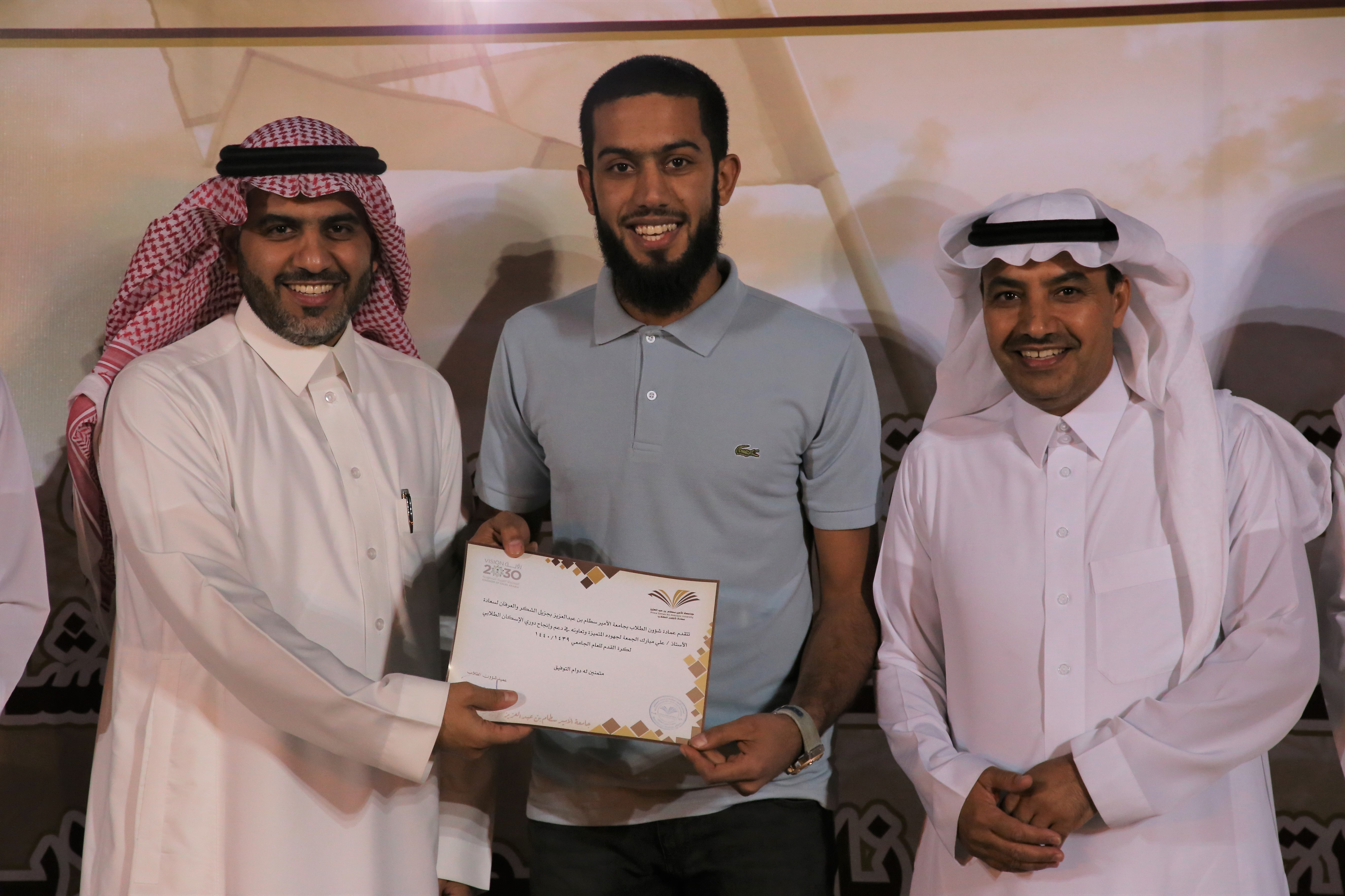 بحضور عميد شؤون الطلاب الدكتور ثلاب بن عبدالله الشكره أقامت وكالة عمادة شؤون الطلاب للأنشطة الطلابية وبالتعاون مع نادي الإسكان الطلابي المباراة النهائية لدوري الإسكان الطلابي مساء يوم الأثنين 11 / 3 / 1440هـ بملاعب الإسكان بالمدينة الجامعية في محافظة الخرج.