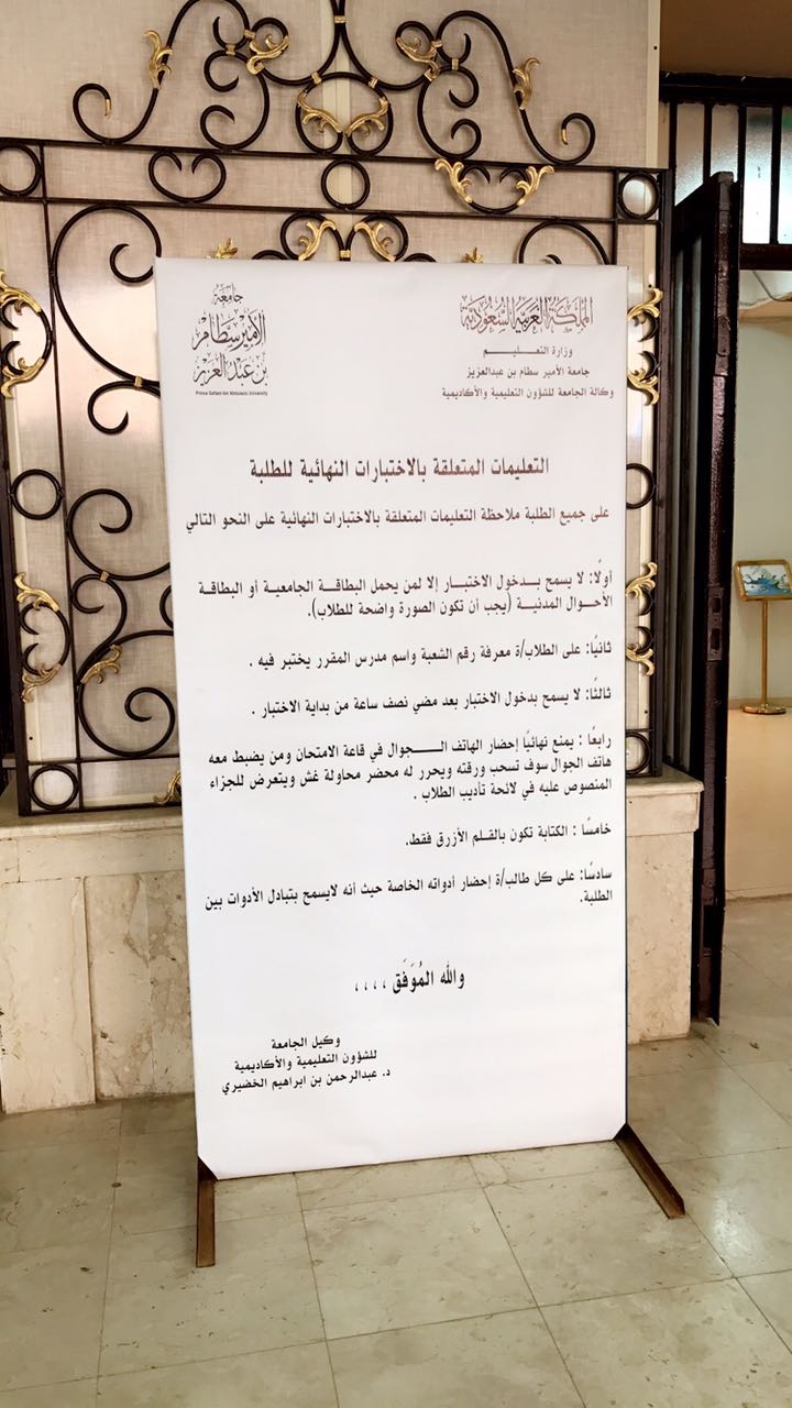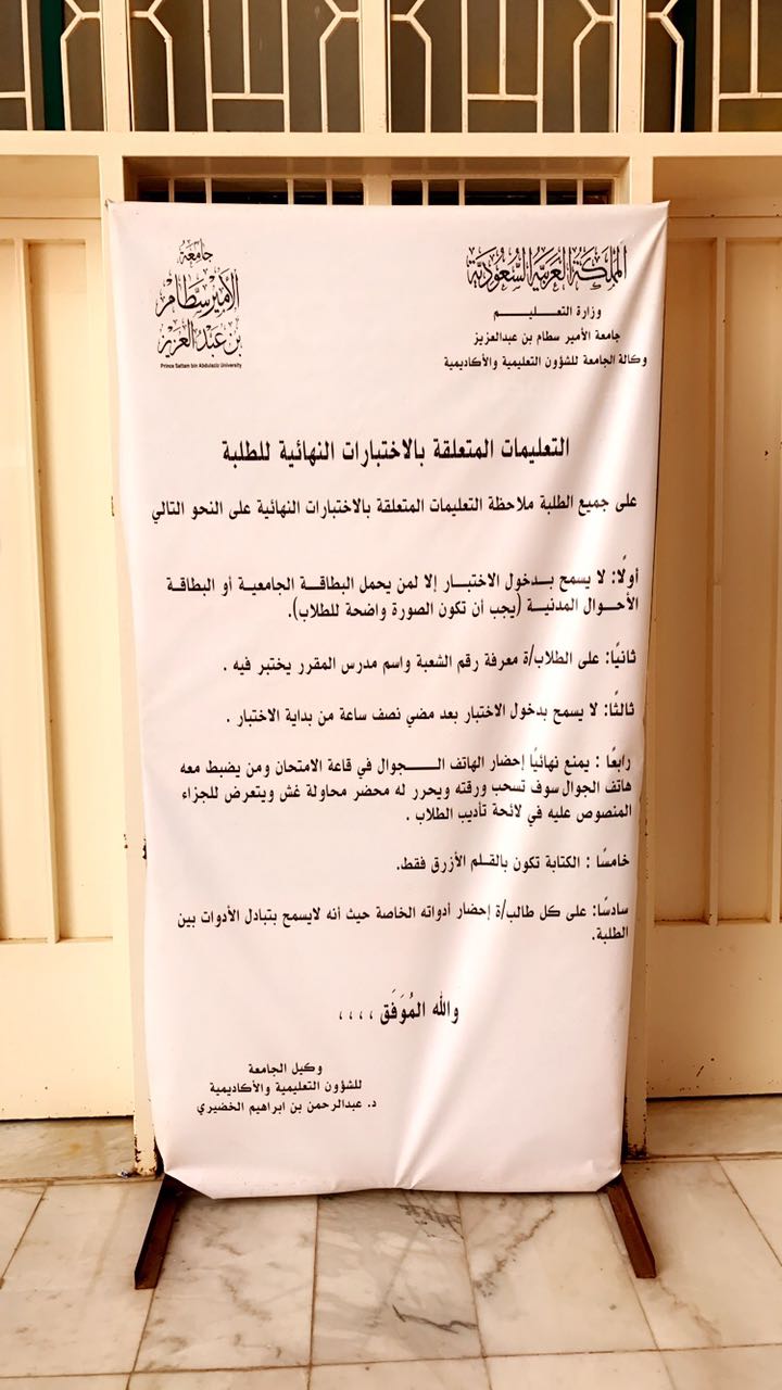 هذا وقد تم تزويد الطالبات بأهم التعليمات الأساسية المتعلقة بالاختبارات من خلال البنرات وإعلانات الحائط قبل الاختبارات.