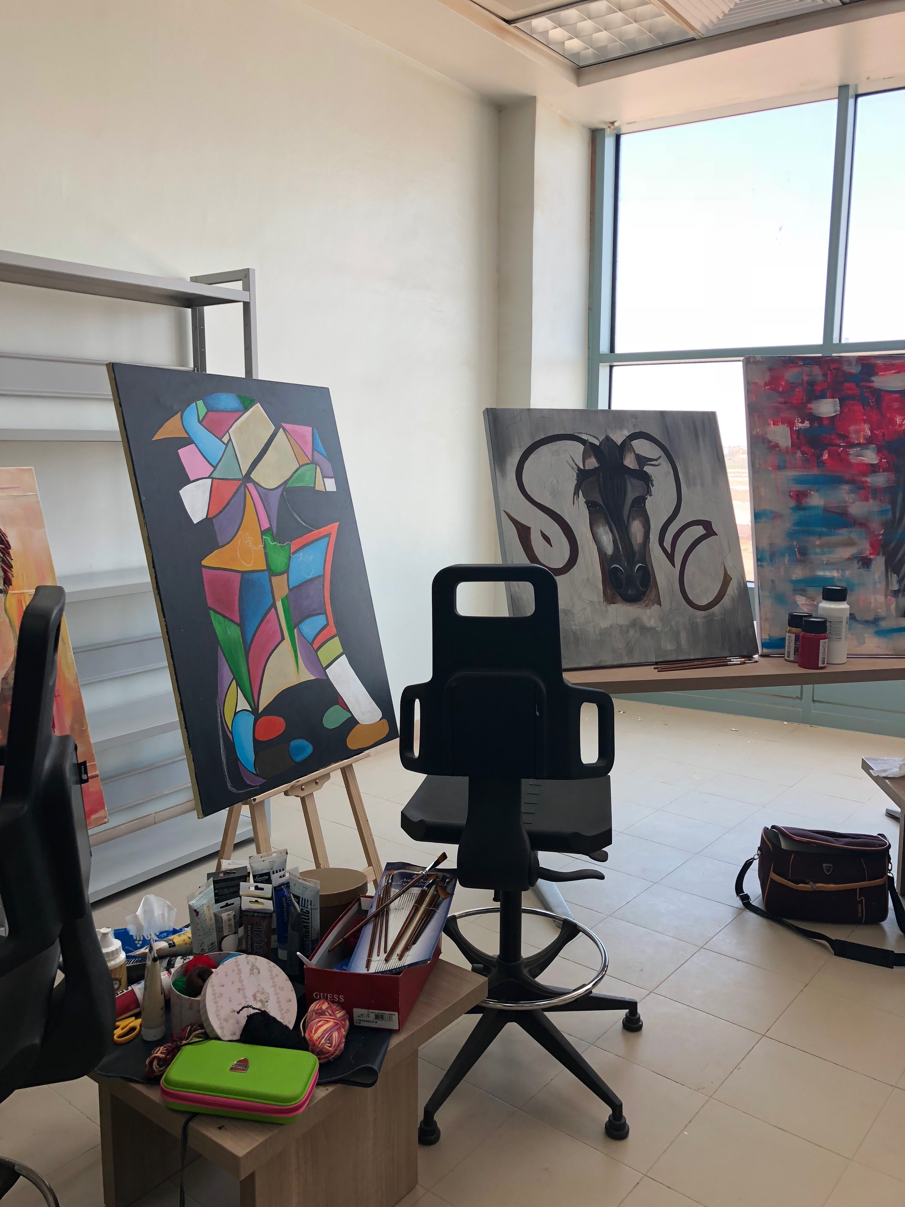 4-نقاش العميدة مع الطالبات حول تطلعاتهن وأفكارهن فيما يخص انتاجهن الفني.