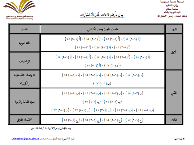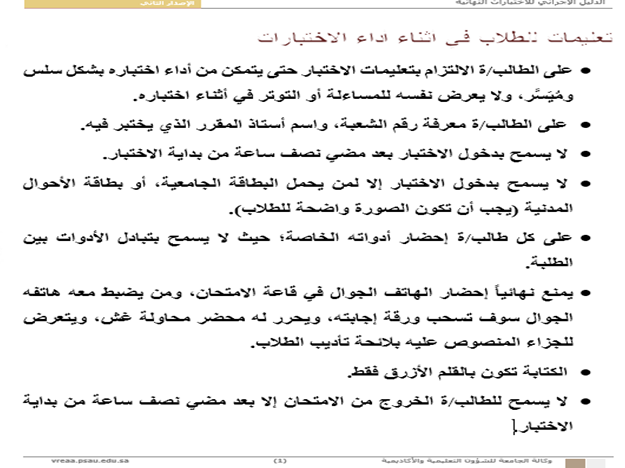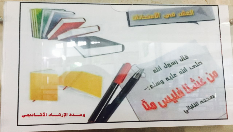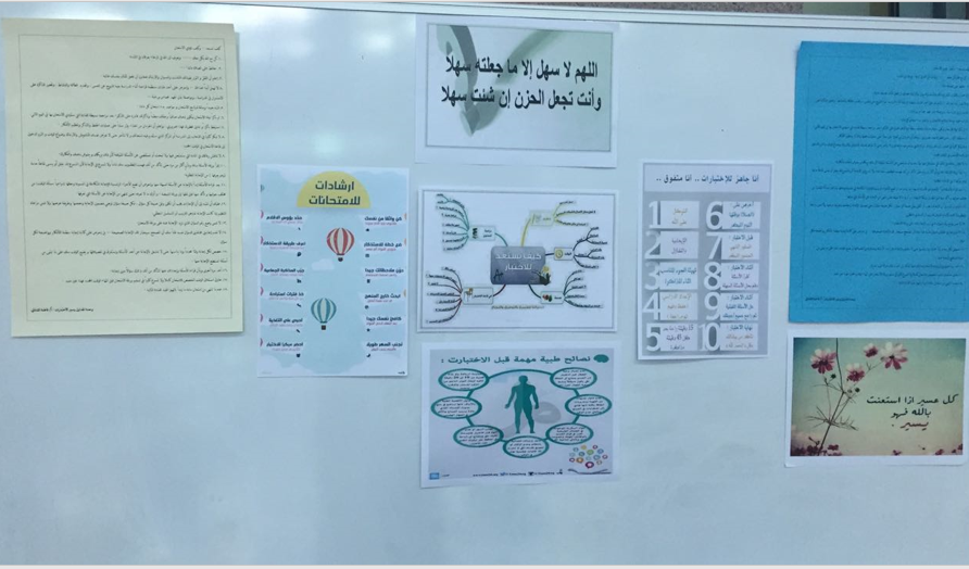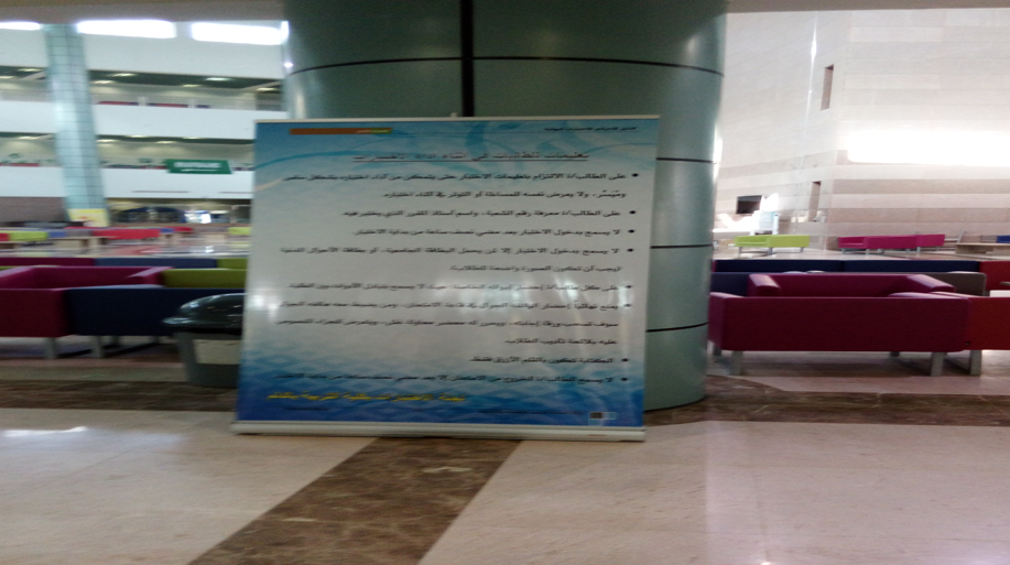 ولقد قامت لجنة الاختبارات بتجهيز الآليات المتبعة للاختبارات ودعم كافة برامج الكلية ، حيث تابعت رئيسة وحدة الجداول وسير الاختبارات أ/ فاطمة شاذلي آلية توفير جداول المراقبات ، وقد تم إعلان تعليمات الاختبارات لكافة الطالبات عن طرق شاشات العرض واللافتات التوجيهية عند البوابات الرئيسية ، بالإضافة إلى اللوحات التوجيهية والتعريفية بكافة تعليمات الاختبارات، مع تمنيات لجنة الاختبارات بالكلية لطالباتها النجاح والتوفيق .