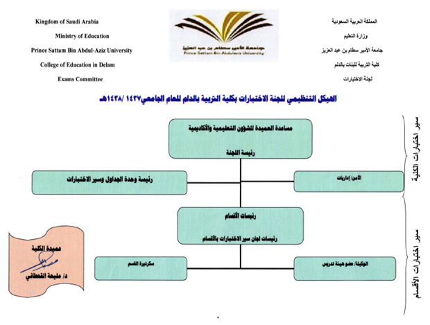 قامت عميدة كلية التربية بالدلم الدكتورة/ مليحة القحطاني بجولة تفقدية صباح يوم الخميس الموافق7/4/1437هـ؛ لمتابعة تجهيزات قاعات الاختبارات النهائية للفصل الدراسي الأول للعام الجامعي1437/1438هـ بالأقسام الأكاديمية بالكلية.