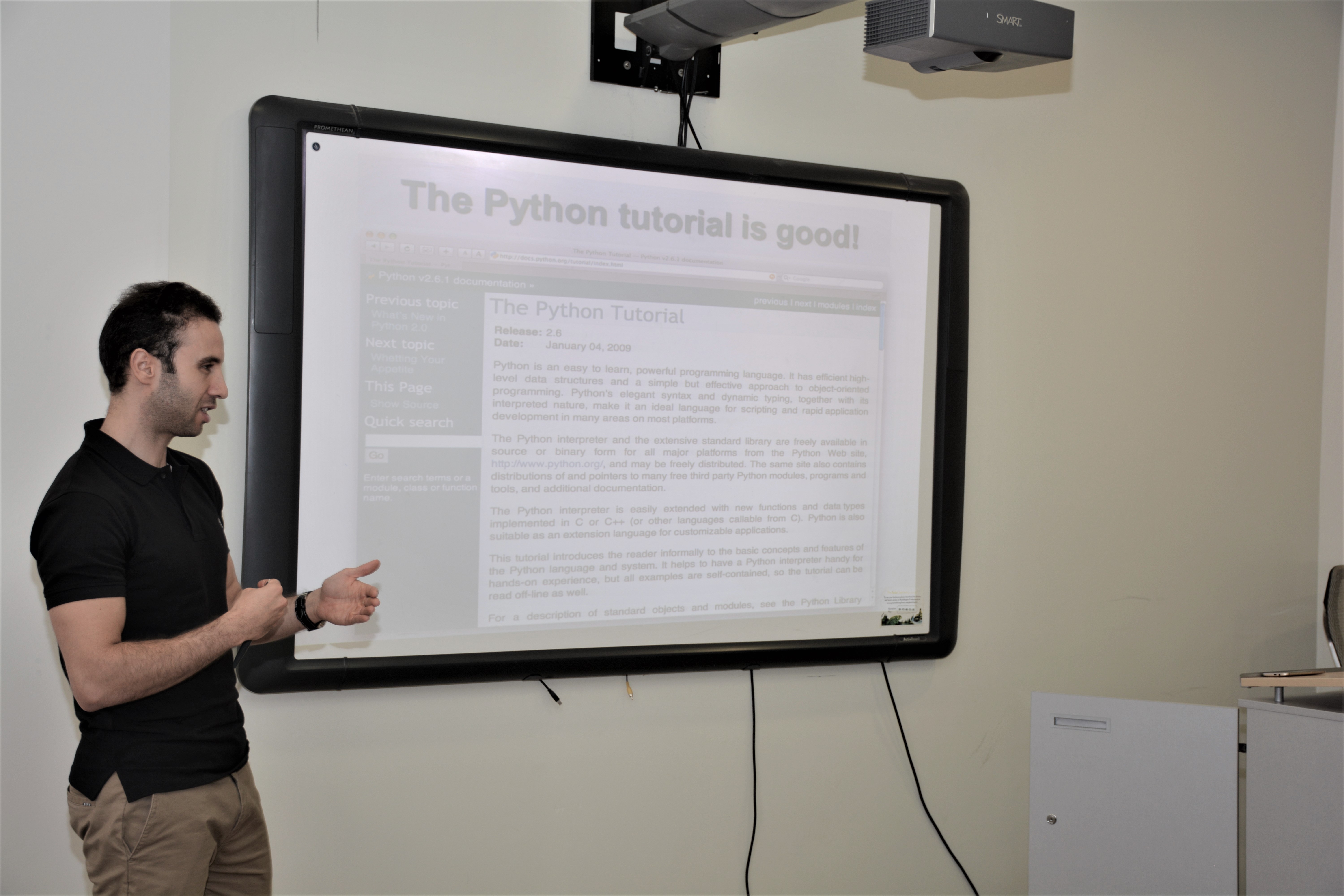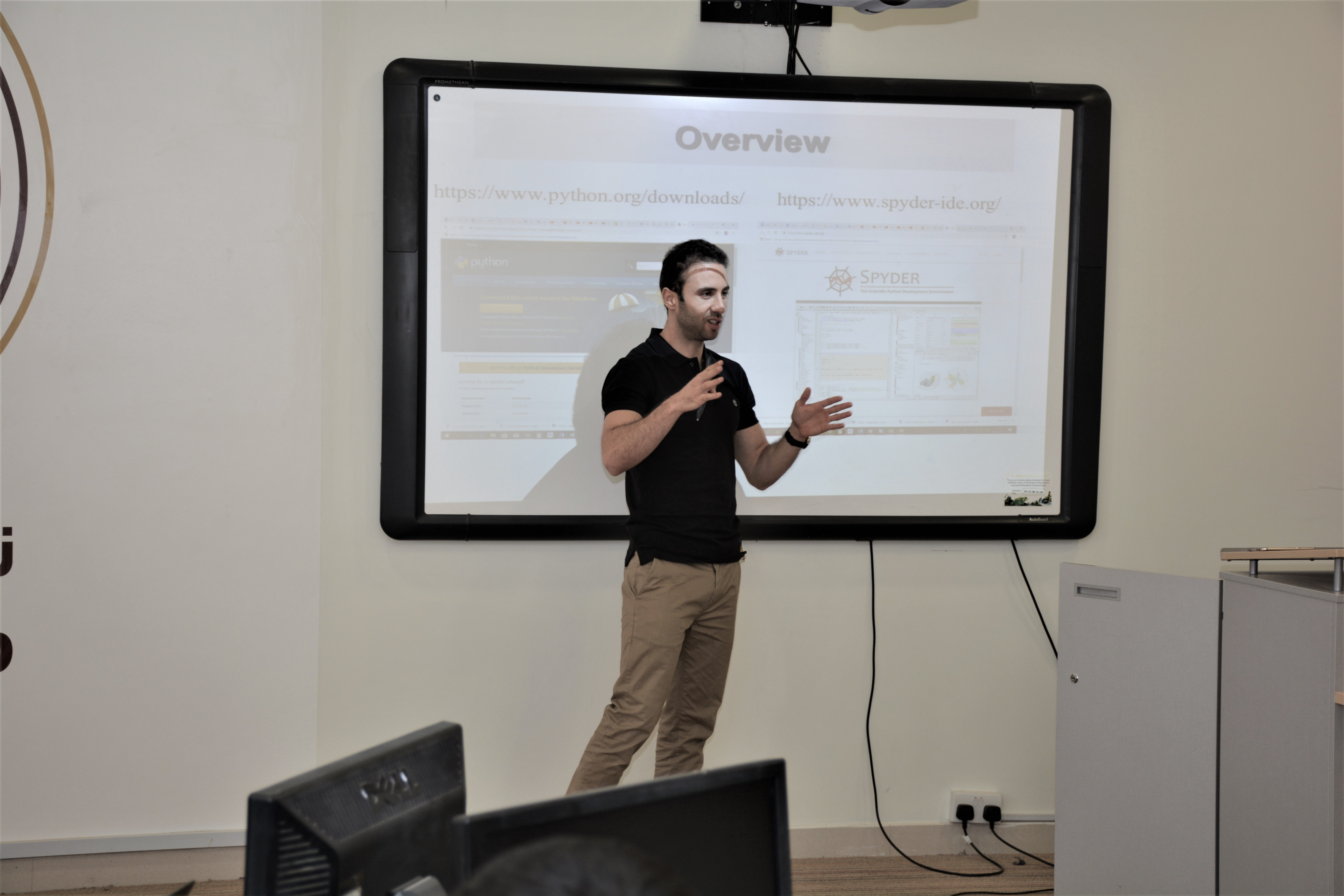 وابتدأ الدكتور اللواتي الدورة بالتعريف عن بايثون (Python) حيث ذكر انها لغة برمجة من لغات المستوى العالي وتتميز ببساطة كتابتها وقراءتها وسهلة التعلم وبأنها مفتوحة المصدر وقابلة للتطوير وتعتبر لغة بايثون لغة تفسيرية، متعددة الأغراض وتستخدم بشكل واسع في مجال علم البيانات، والأمن السيبراني، وعدد من المجالات الأخرى.