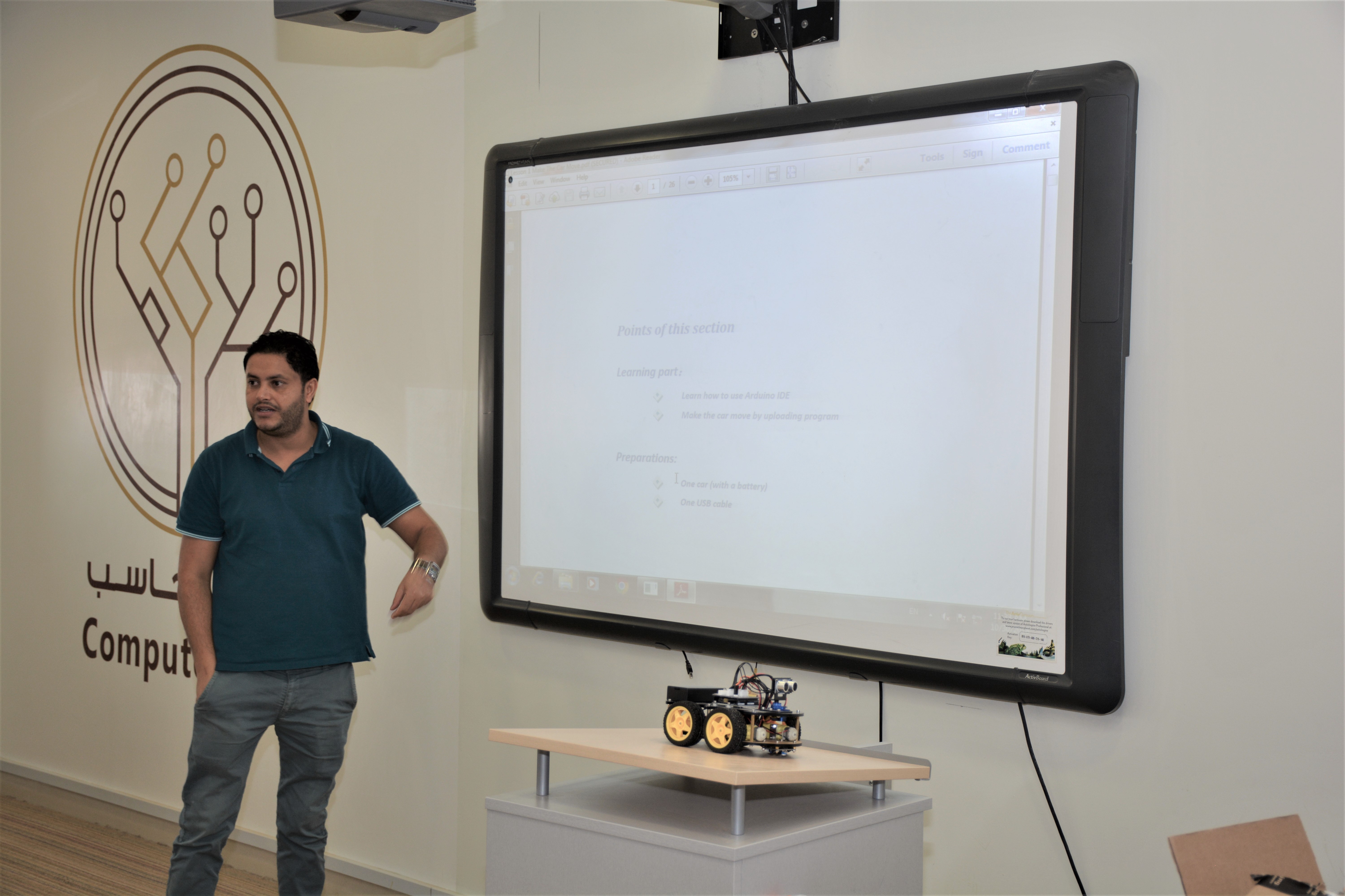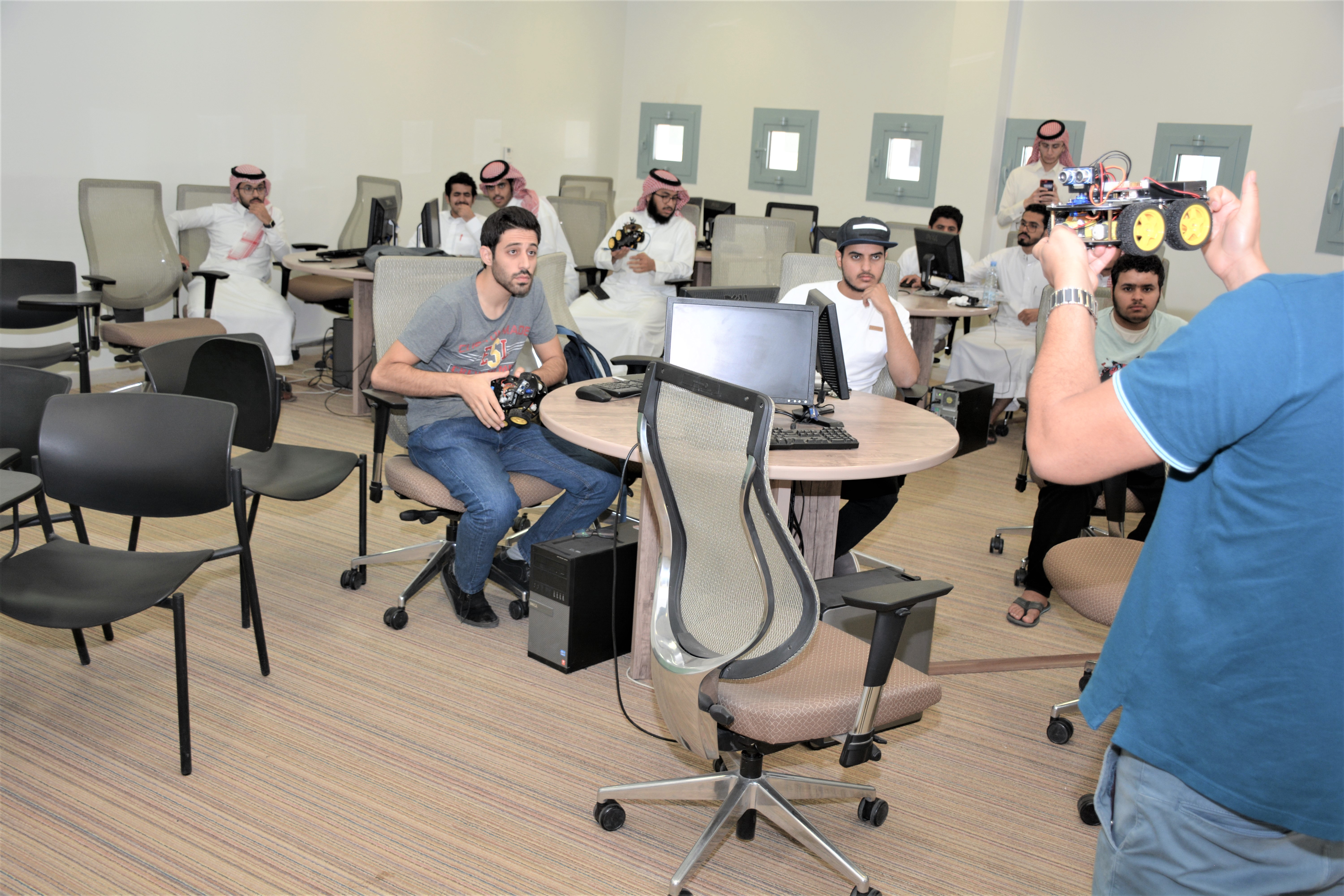 أقامت وحدة الروبوت في نادي الابداع الرقمي التابع لعمادة شؤون الطلاب في كلية هندسة وعلوم الحاسب يوم الاثنين 1440/02/20هـ الموافق لـ 2018/10/29م ورشة عمل بعنوان (الروبوت المتحرك) Mobile Robotics Workshop Practical Training ألقاها الدكتور/ ياسين صالح بوترعه.