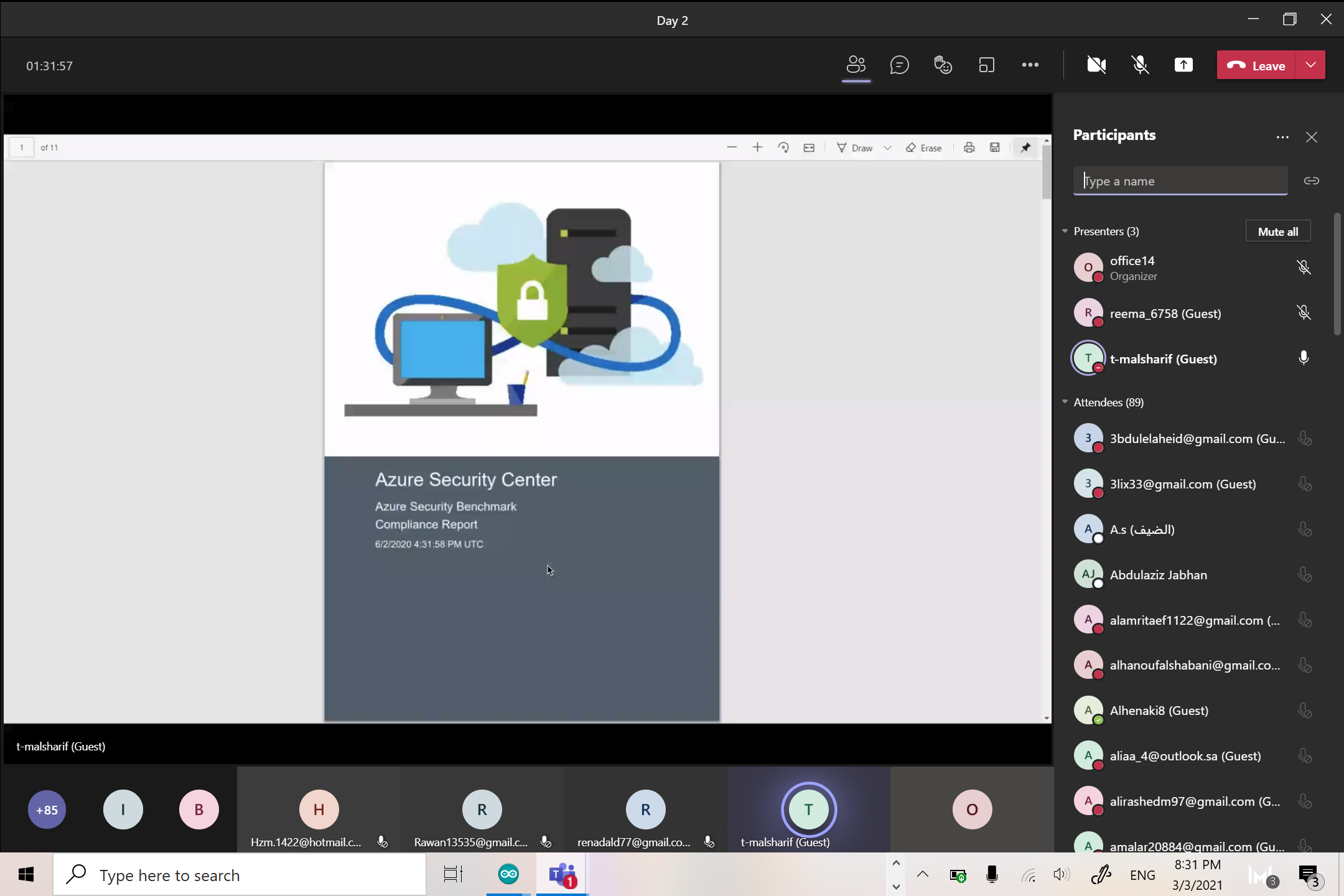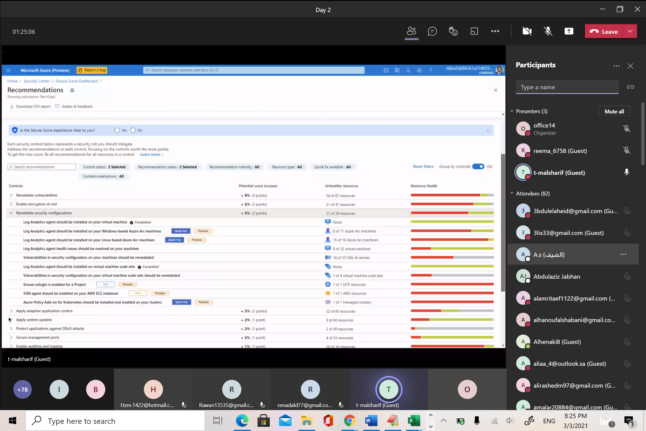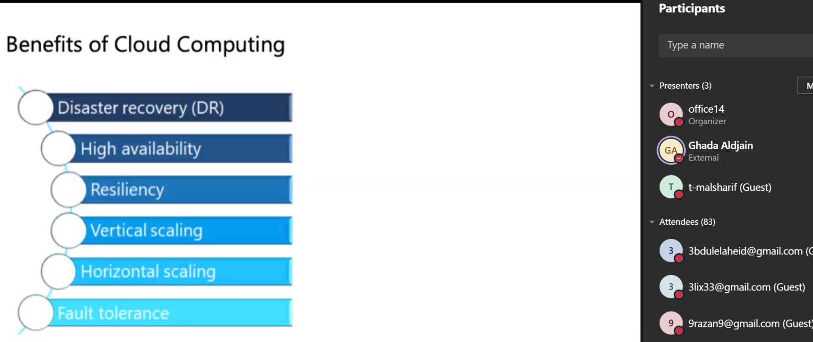 وتناولت الدورة في موضوعاتها لشرح متكامل لحزمة الخدمات التي تعمل من خلال الإنترنت عن طريق الخدمة السحابية التي توفر وصوليات لخدمات عديدة وبرامج مبنية باستخدام مايكروسوفت أوفيس من خلال المحتوى التفاعلي لتكوين هويته على الأجهزة لإنجاز أعمال المنزل أو التعليم أو المؤسسات من خلال تطبيقات مايكروسوفت أوفيس المبتكرة وخدمات السحابة الذكية والأمان للحماية القوية عبر الأسطح بشكل أفضل , لذا فإن تطبيق التدابير الفعالة لدى موضوع هذه الدورة يمثل تحدياً كبيراً اليوم نظراً لوجود أجهزة وبرامج كثيرة واعتماد أغلب الشركات والمؤسسات في كافة القطاعات على أجهزة الحاسب الآلي والبرامج وملحقاتها من أجهزة الشبكة وغيرها.