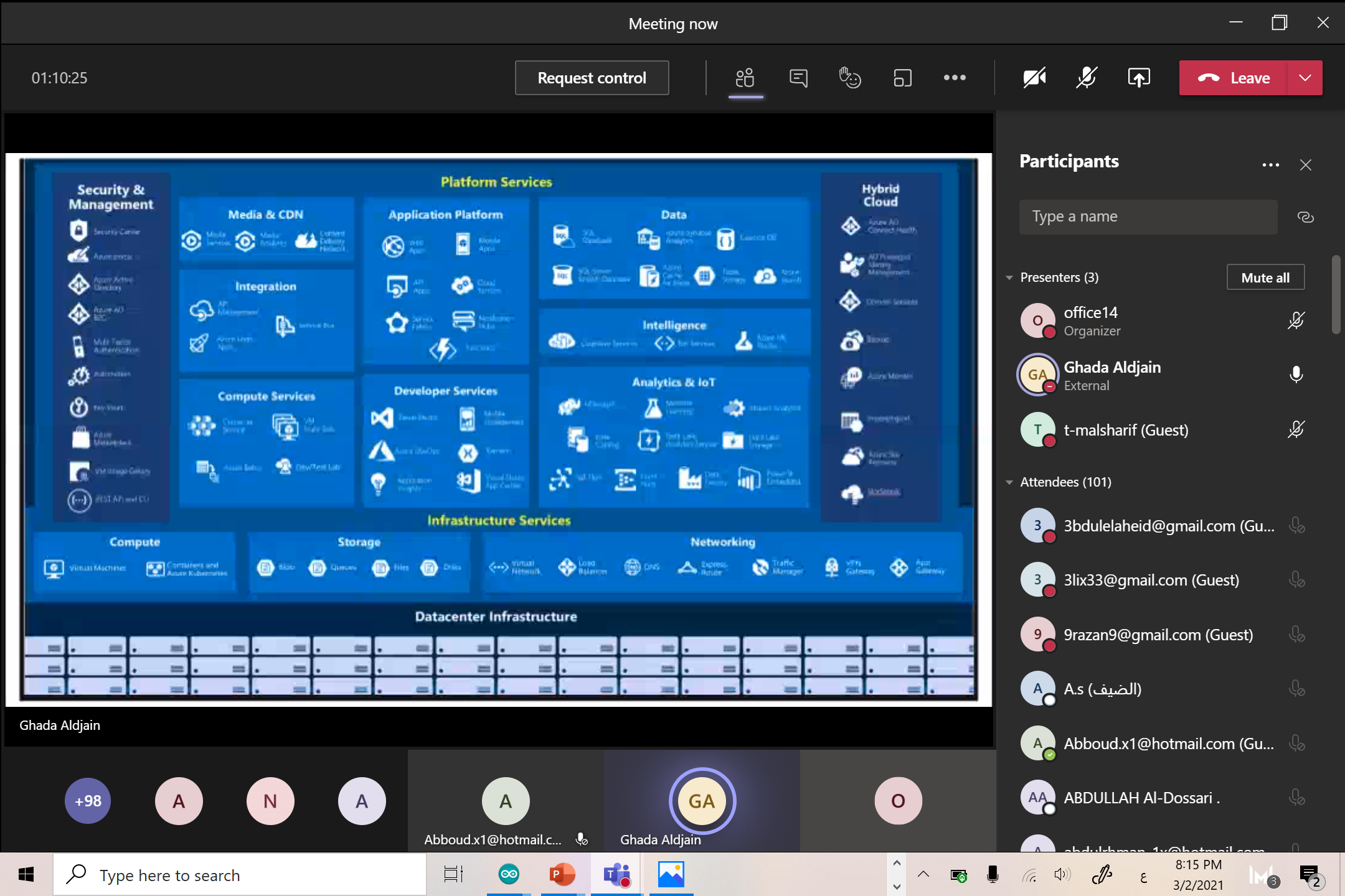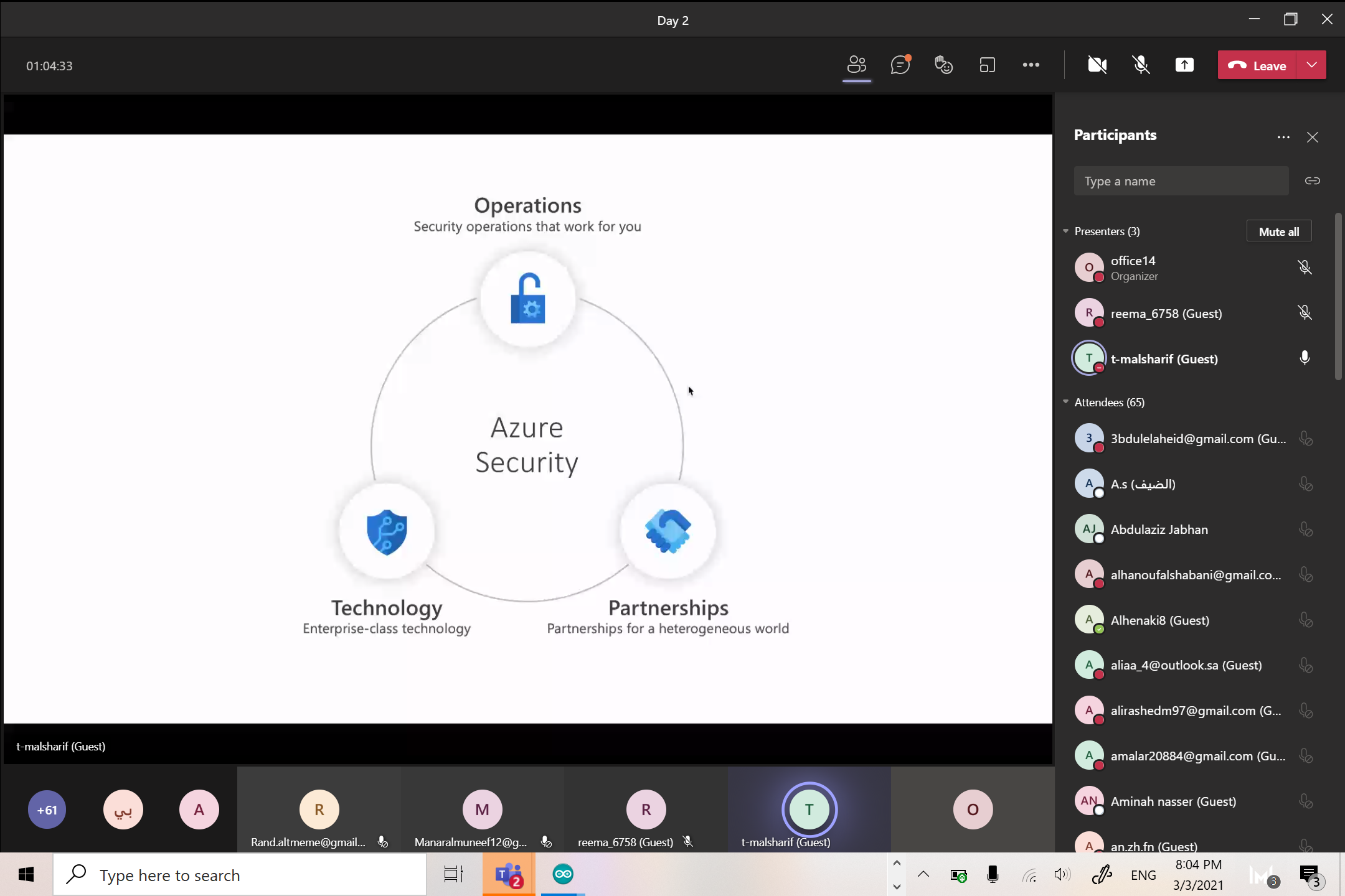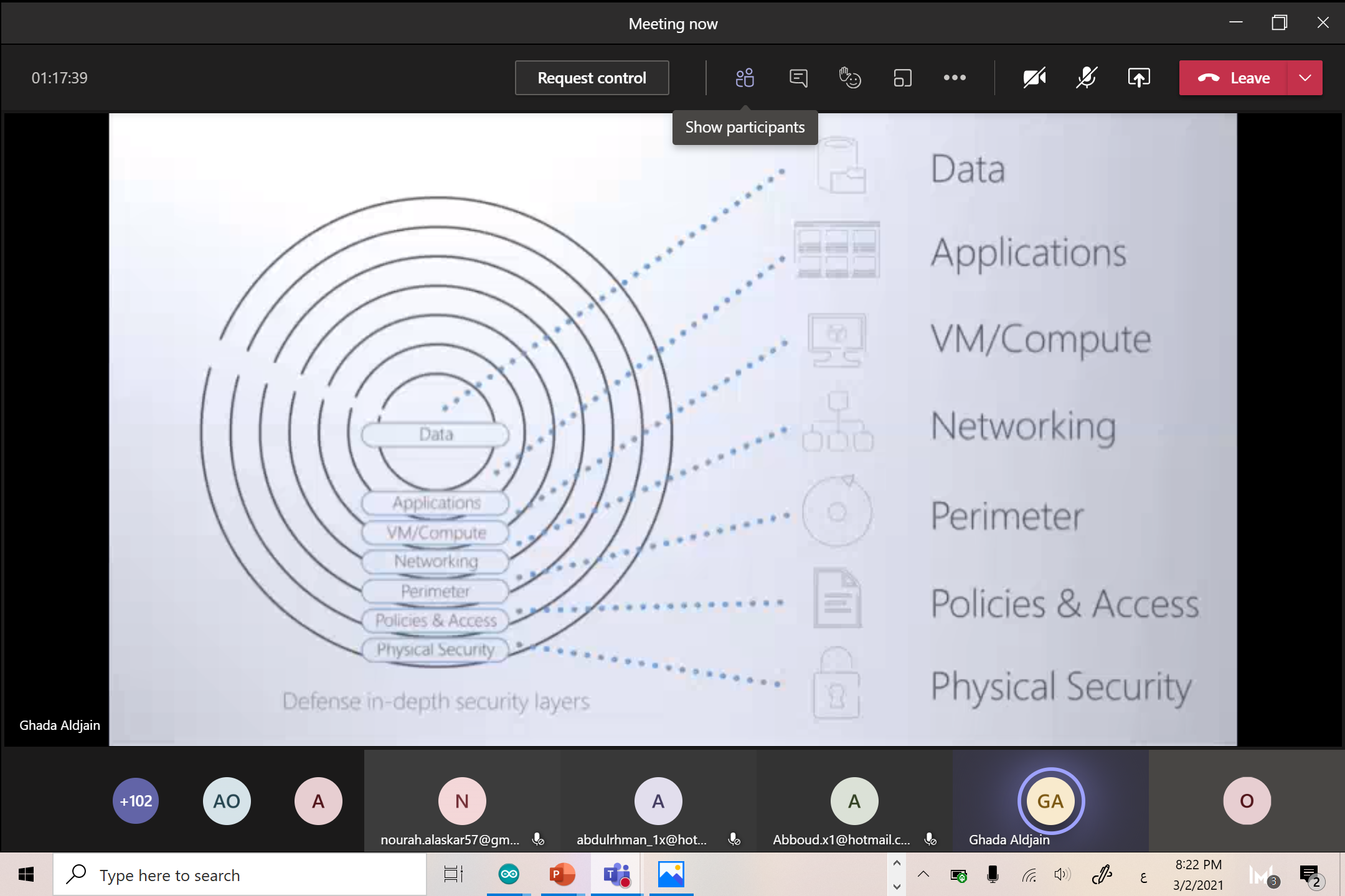 وتناولت الدورة في موضوعاتها لشرح متكامل لحزمة الخدمات التي تعمل من خلال الإنترنت عن طريق الخدمة السحابية التي توفر وصوليات لخدمات عديدة وبرامج مبنية باستخدام مايكروسوفت أوفيس من خلال المحتوى التفاعلي لتكوين هويته على الأجهزة لإنجاز أعمال المنزل أو التعليم أو المؤسسات من خلال تطبيقات مايكروسوفت أوفيس المبتكرة وخدمات السحابة الذكية والأمان للحماية القوية عبر الأسطح بشكل أفضل , لذا فإن تطبيق التدابير الفعالة لدى موضوع هذه الدورة يمثل تحدياً كبيراً اليوم نظراً لوجود أجهزة وبرامج كثيرة واعتماد أغلب الشركات والمؤسسات في كافة القطاعات على أجهزة الحاسب الآلي والبرامج وملحقاتها من أجهزة الشبكة وغيرها.