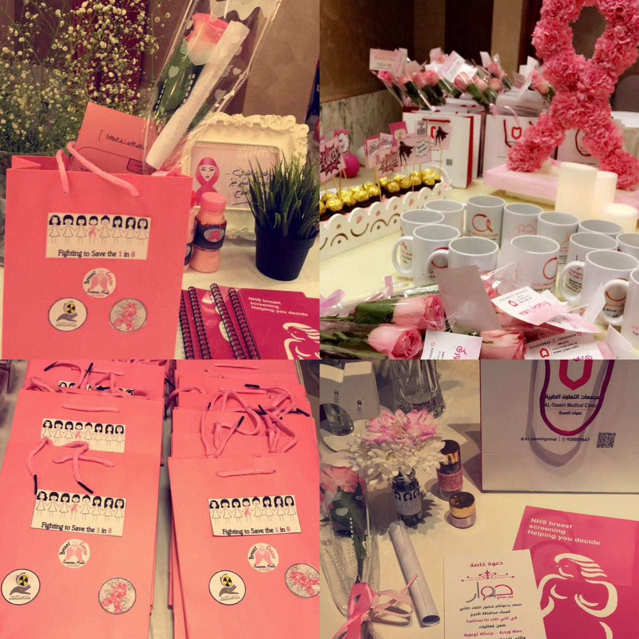 (ركن سرطان الثدي) شرح فيه الطالبات المرض وأعراضه وعلاجه وكيفية تشخيصه . وقدمن فيه كتيبات ومطويات توضح ذلك , وركن الالتراساوند ( الموجات الصوتية) شرح فيه تشخيص المرض بالالتراساوند وعرض بعض صور للحالات الطبيعية وغير الطبيعية في التشخيص , (ركن الماموجرام) وتضمن طريقة الفحص بالجهاز الاشعاعي وعرض بعض الصور لبعض الحالات , وركن تعليم الفحص الذاتي قدمت فيه الطالبات طريقة الفحص الذاتي في المنزل .