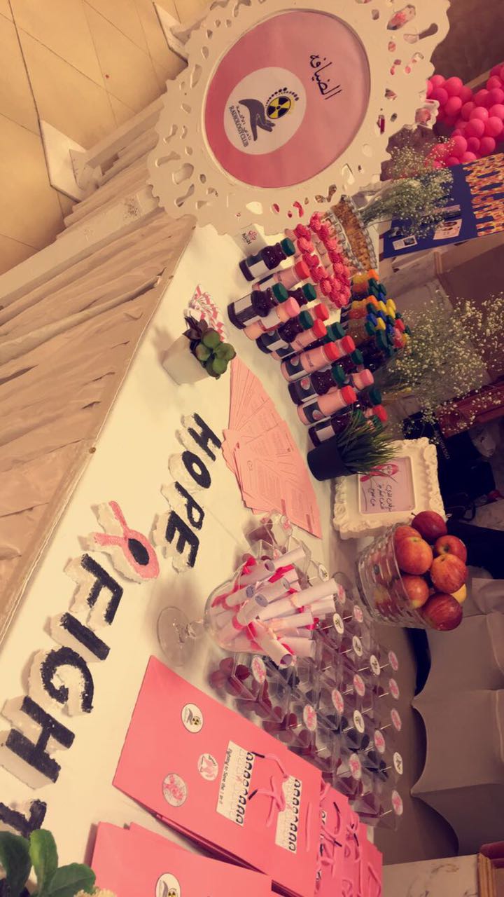 وضمن فقرات الملتقى قدمت مديرة النادي الطالبة نورة العتيبي كلمة تتضمن نبذة عن تشخيص المرضى وكيفية علاج السرطان بالأشعة . كما شارك النادي أيضاً بالتثقيف والتوعية من خلال إقامة أركان مختلفة تحت عنوان hope&fight)) حيث باشرت بتقديم التوعية الصحية للحضور عضوات النادي من الطالبات .