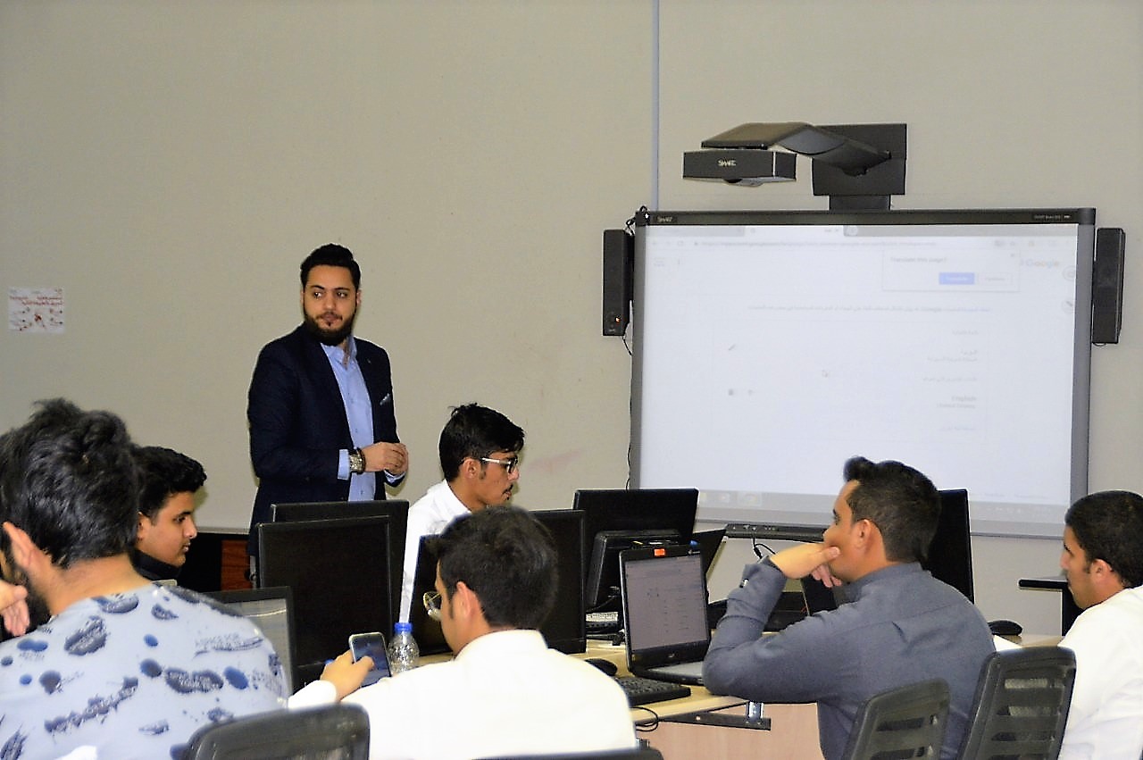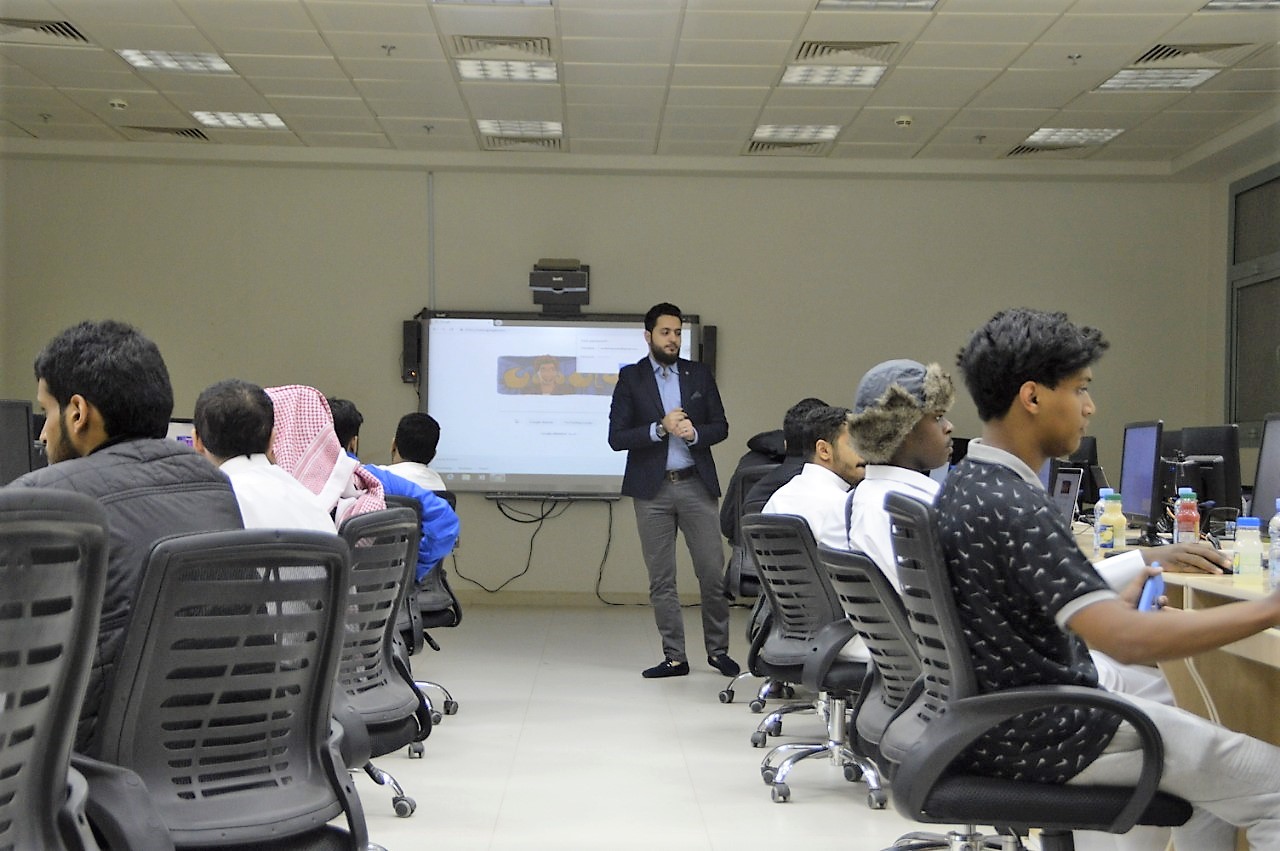ضمن سلسلة برامجه التدريبية نظم نادي الإسكان الطلابي دورة بعنوان "تطبيقات google للطالب الجامعي" مساء يوم الاثنين 6 / 6 / 1440هـ قدمها الأستاذ / زياد عدنان حامد , بمعمل الحاسب في كلية هندسة وعلوم الحاسب.