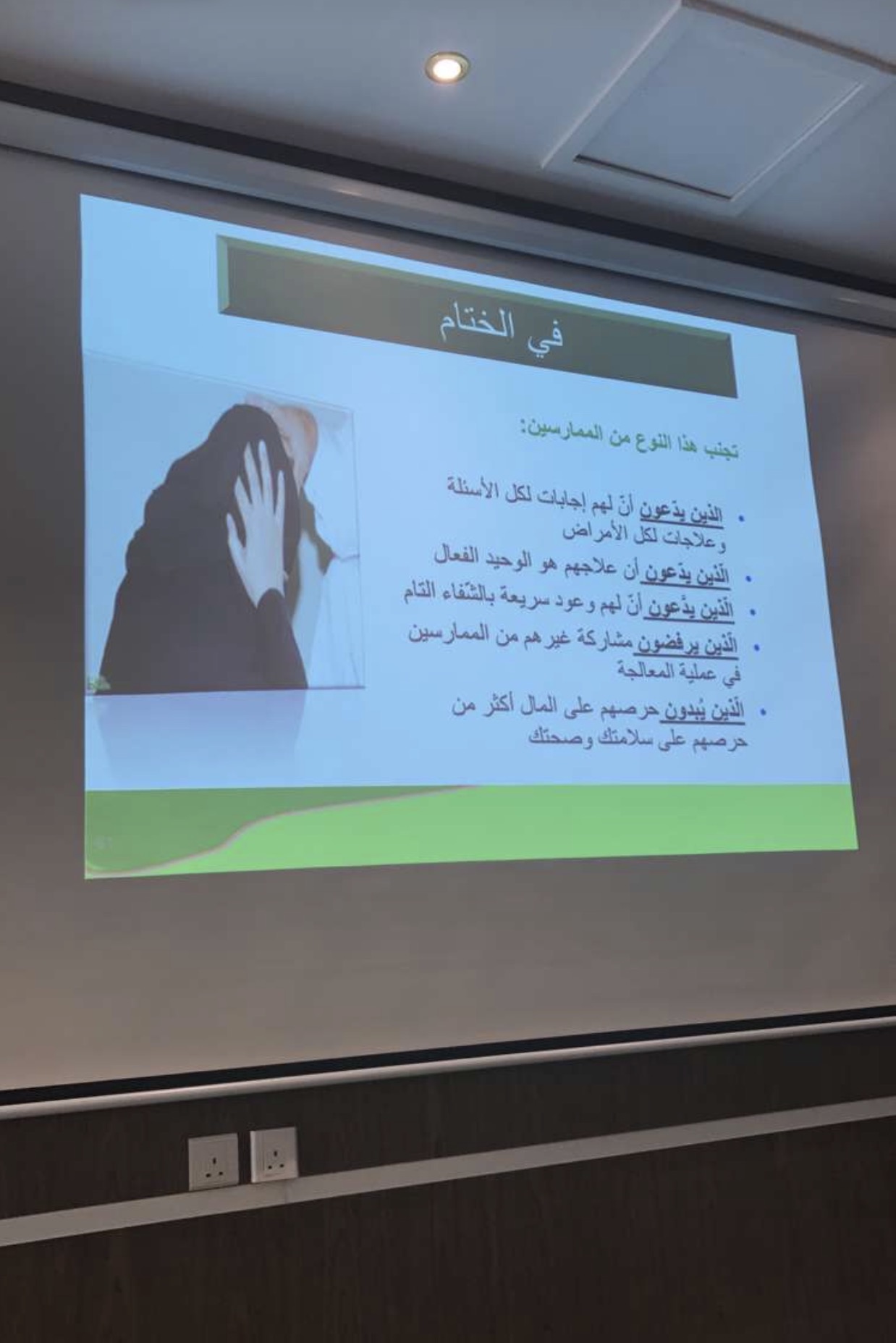قام نادي البحث العلمي بكلية الصيدلة شطر الطالبات بزيارة للمركز الوطني للطب البديل والتكميلي وذلك يوم الأثنين الموافق ٢٤-٦-١٤٣٩هـ وتضمنت الزيارة على برنامج أقامه المركز حيث ابتدأ بعرض تقديمي ألقاه الأستاذ مشاري صالح القاعد مدير الشؤون الفنية بالمركز عرف فيه الطب البديل والتكميلي ومجالاته وتطبيقاته ودور المركز في الطب البديل والبرامج المقامة في المركز التي تتضمن حالياً دورات للحجامة بشكل دوري وأيضاً تحدث عن الأبحاث المقامة بالمركز بعد ذلك تم القيام بجولة حول المعرض الذي احتوى على عينات للأدوية العشبية المتداولة والأدوات المستخدمة قديماً للحجامة واختتم البرنامج بورشة عمل بسيطة ألقتها الدكتورة نوال العبدالوهاب قامت فيها بتعليم الطالبات عن ماهية الحجامة وبداياتها وأنواعها والأدوات المستخدمة فيها وكيفية تطبيقها وانتهت الورشة بإجابتها على استفسارات الطالبات