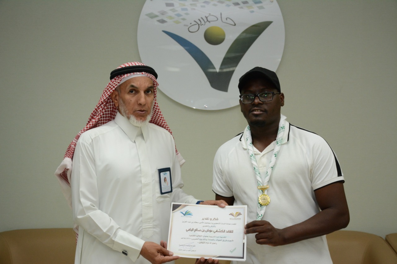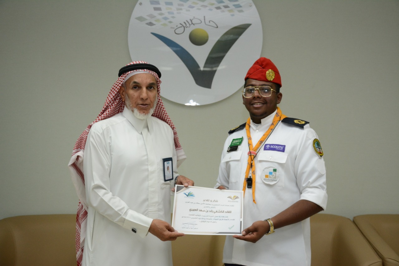 نظمت وحدة الأنشطة الطلابية بعمادة السنة التحضيرية ممثلة بنادي الجوالة يوم الخميس الموافق 10 / 3 / 1441هـ دورة تدريبية بعنوان "التقاليد الكشفية" قدمها القائد الكشفي أ. عوض اليامي قائد فريق سواعد الخرج