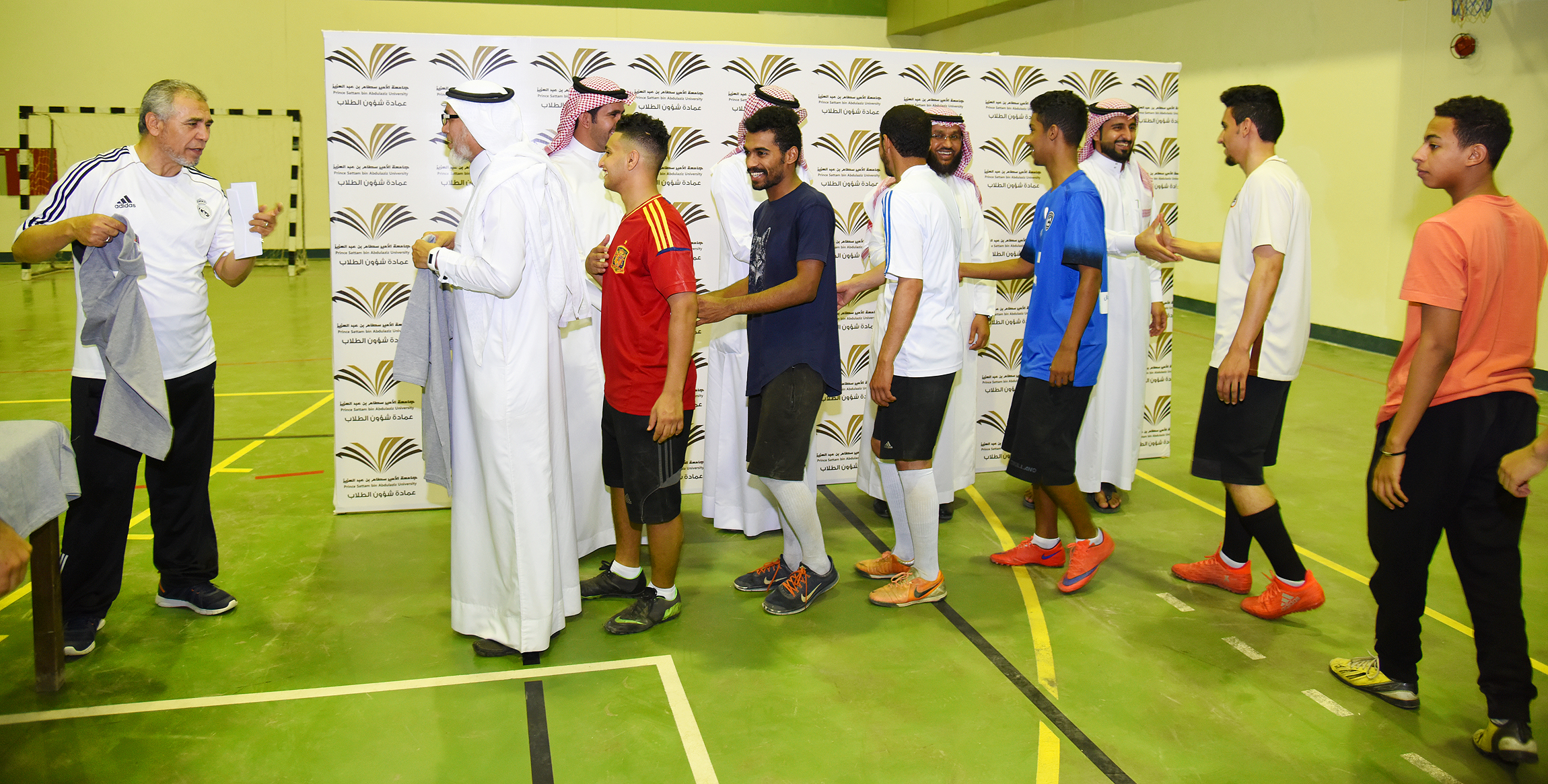 وبعد انتهى المباراة تفضل وكيل عمادة شؤون الطلاب للخدمات الطلابية الدكتور عبدالله الشتيلي يرافقه مساعد عميد شؤون الطلاب الأستاذ جمال الحمداء لتتويج الفائز بالبطولة وتكريم الجهات المنظمة , حضر المباراة مدير إدارة عمادة شؤون الطلاب الأستاذ عمر العبدالله ومدير الأندية الطلابية الأستاذ راشد العسكر.