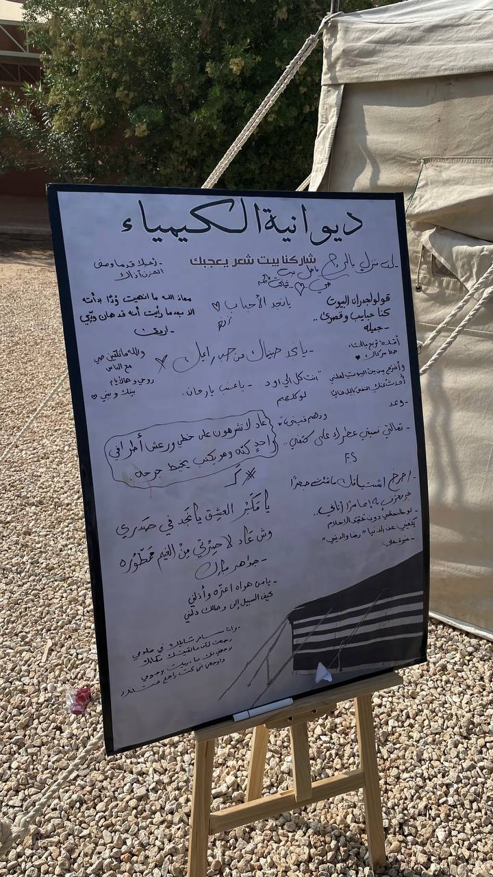 تحت رعاية وكلية كلية العلوم والدراسات الإنسانية بالخرج (أقسام الطالبات) الدكتورة نوال الفهيد قام نادي الكيمياء متمثلًا برئيسة نادي الكيمياء عهد حسين أبو فطيم وأعضاء النادي بتقديم فعالية شتوية بعنوان (ديوانية الكيمياء) وذلك يوم الأربعاء الموافق 11/1/2023م في تمام الساعة 9 صباحًا في الساحة الخارجية للكلية.