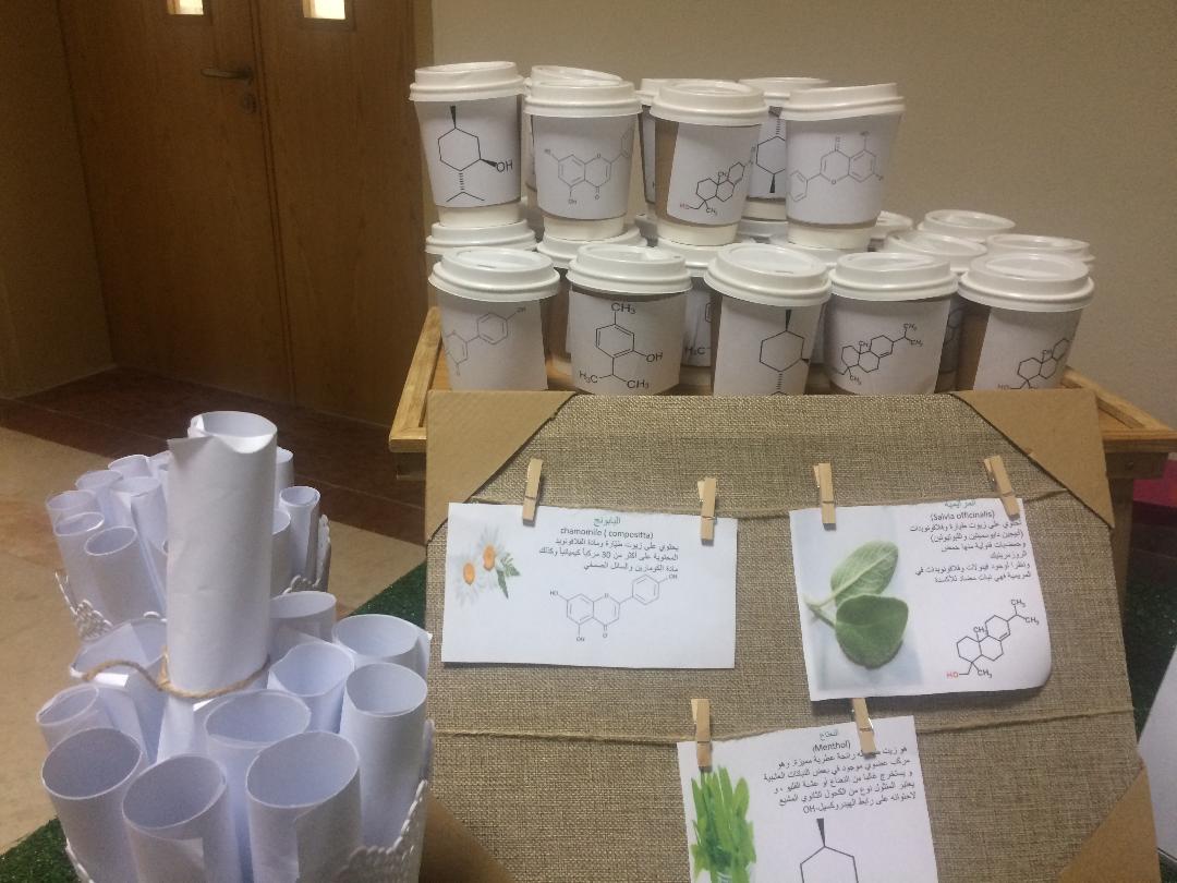 حيث قامت طالبات النادي بتجهيز عدد من الأركان المتنوعة والتي توضح مدى الارتباط الوثيق بين علم الكيمياء وجمع مجالات الحياة.. ففي ركن كيمياء مستحضرات التجميل تم شرح التركيب الكيميائي للأنواع المختلفة من مستحضرات التجميل وتوضيح الفرق بين الأنواع الأصلية منها والتقليدية. وفي ركن كيمياء المطبخ تم عرض لأمثلة عن ما يحدث في المطبخ من تفاعلات كيميائية كالتفاعلات الخاصة بعمليات العجن وتأكسد الخضار والفواكه وشرح لأسباب بعض الظواهر التي تحدث أثناء عمليات الطبخ وتجهيز الطعام وتقديم بعض الإرشادات والنصائح. وفي الركن الخاص بالكيمياء الجنائية تم عرض لطريقة التعامل مع الأدلة الجنائية ولطرق التحليل الكيمائي المختلفة. وشمل ركن كيمياء النبات على أهم الأعشاب والنباتات الطبية وشرحا لاستخداماتها الضارة والنافعة. بالإضافة إلى الركن الخاص بالقهوة والذي تم من خلاله توضيح تركيبها الكيميائي وأهمية كل مركب.