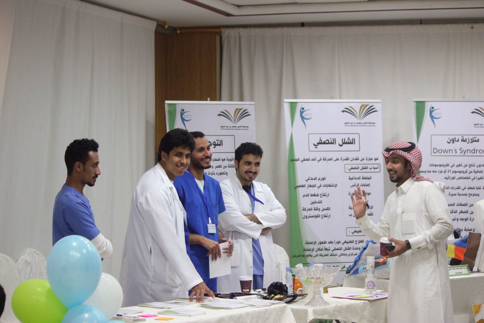 أقام نادي العلاج الطبيعي بجامعة الأمير سطام بن عبد العزيز برنامج اليوم العالمي للمعاقين بمشاركة مركز التأهيل الشامل للإناث بالخرج وذلك في مستوصف التعاون الأول؛ حيث تم عرض وسائل إعلامية عن الشلل النصفي ومتلازمة داون ومرض التوحد وكيفية التعامل مع المصابين بهذه الأمراض وبعض المنشورات التوعوية، وتم توعية الزوار بدور الأسرة والمجتمع في تفهم احتياجات المعاق من خلال التوعية والتدريب وتوفير الوسائل التعليمية الخاصة بهم والتي تشمل النواحي الجسدية والعقلية والنفسية وضرورة دمجهم بأفراد المجتمع، بعد ذالك تم تكريم الجهات المشاركة في البرنامج .
