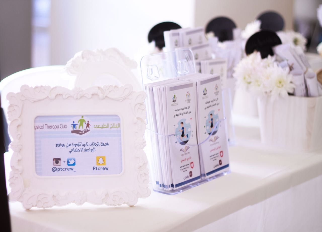 أقام نادي العلاج الطبيعي بكلية العلوم الطبية التطبيقية بجامعة الأمير سطام بن عبدالعزيز بالمشاركة مع نادي العلاج الطبيعي بكل من جامعة الأميرة نورة وجامعة الملك سعود ونادي العلاج الطبيعي بجامعه الأمير سطام( قسم الطلاب ) تحت إشراف د/ نادية لطفي معرض بعنوان (مواهب بلا حدود ) وذلك يوم الثلاثاء الموافق 5/10/ 1438هـ في مستشفى الحرس الوطني بالرياض .