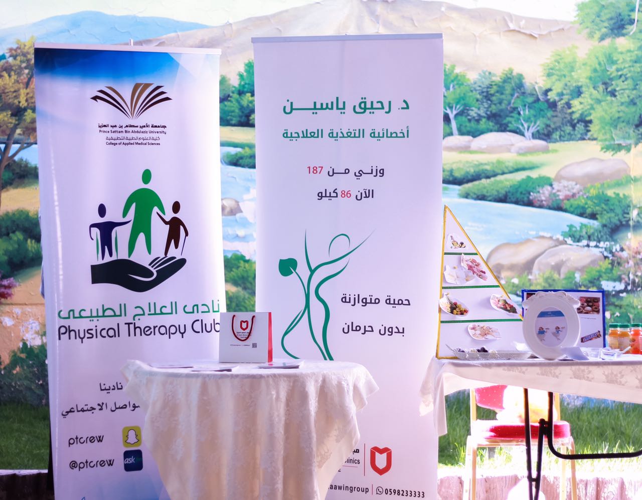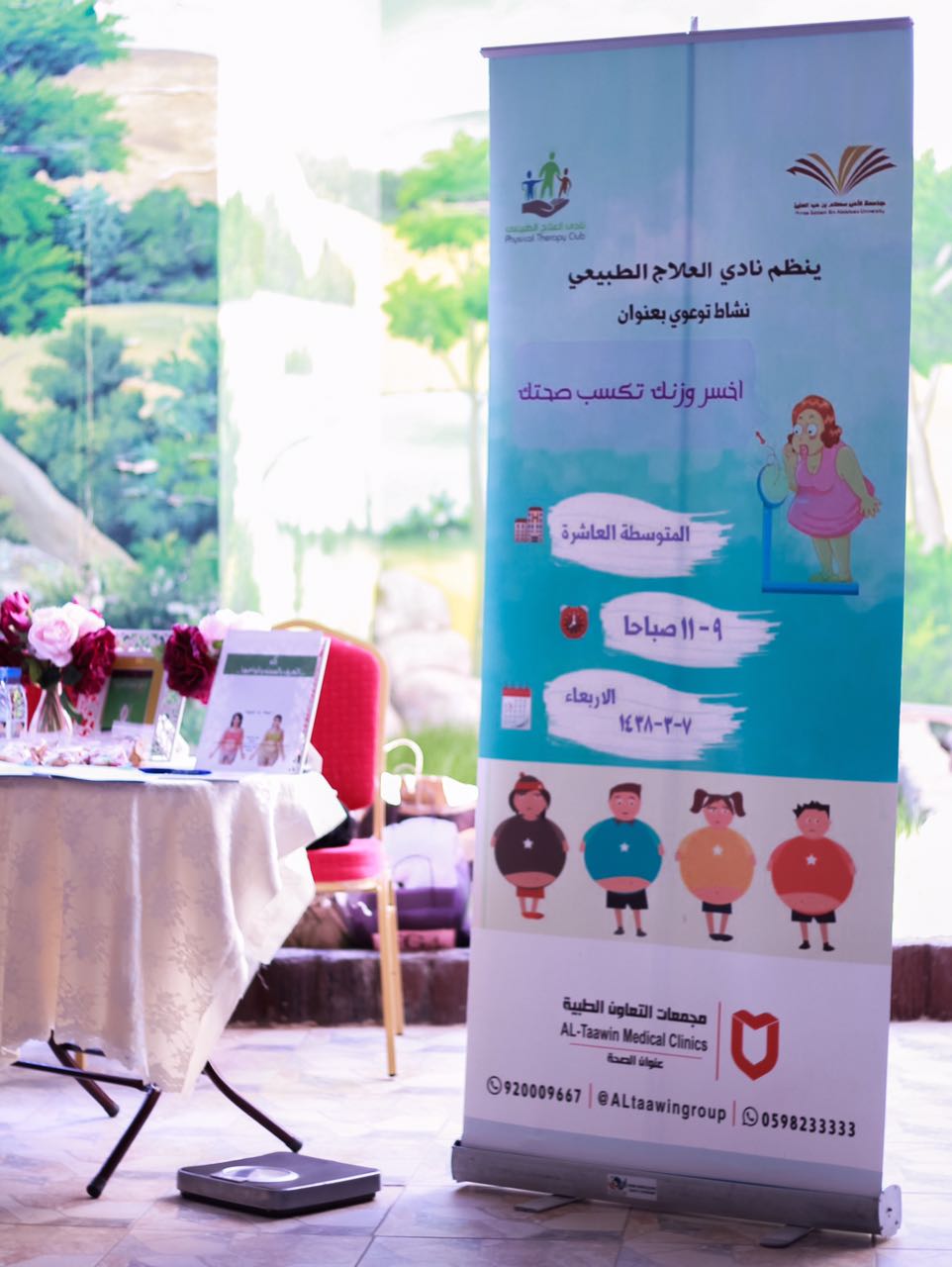 نظمت عضوات نادي العلاج الطبيعي بكلية العلوم الطبية التطبيقية فعالية بعنوان (اخسر وزنك تكسب صحتك) وذلك يوم الاربعاء 7/3/ 1438هـ بالمتوسطة العاشرة بالخرج, وتم استضافة أخصائية تغذية صاحبة خبرة واسعة في هذا المجال .
