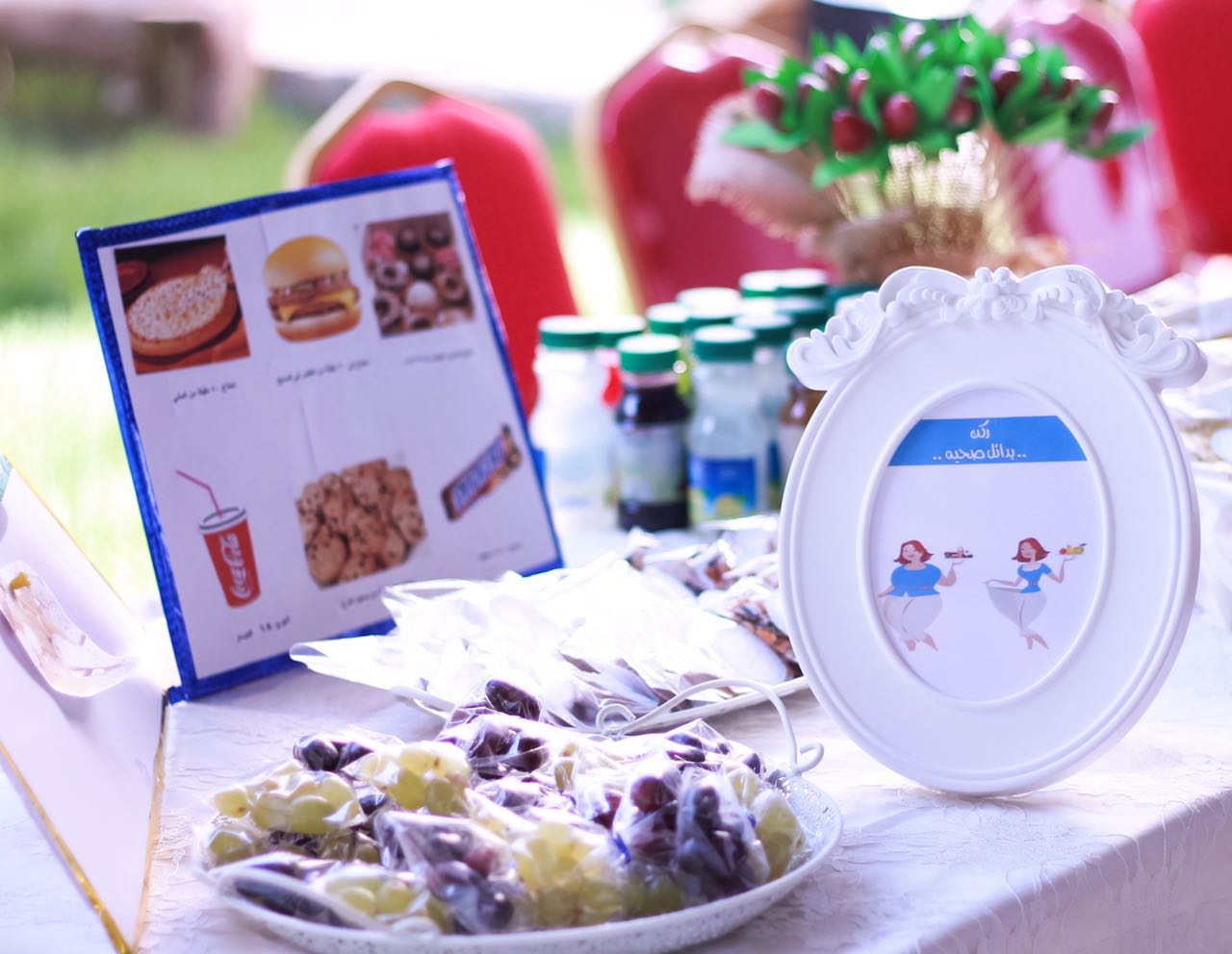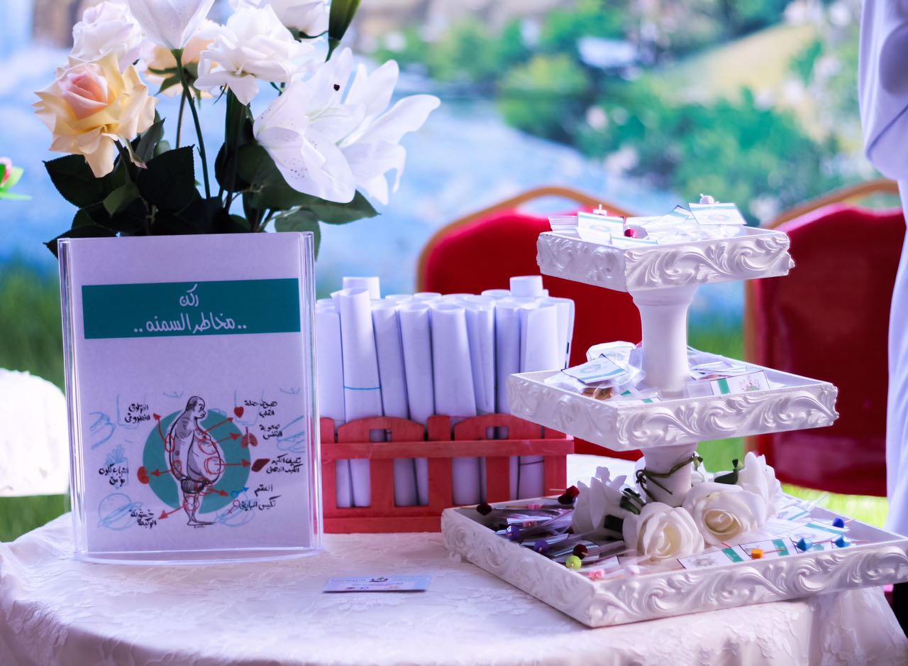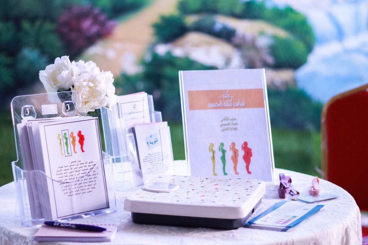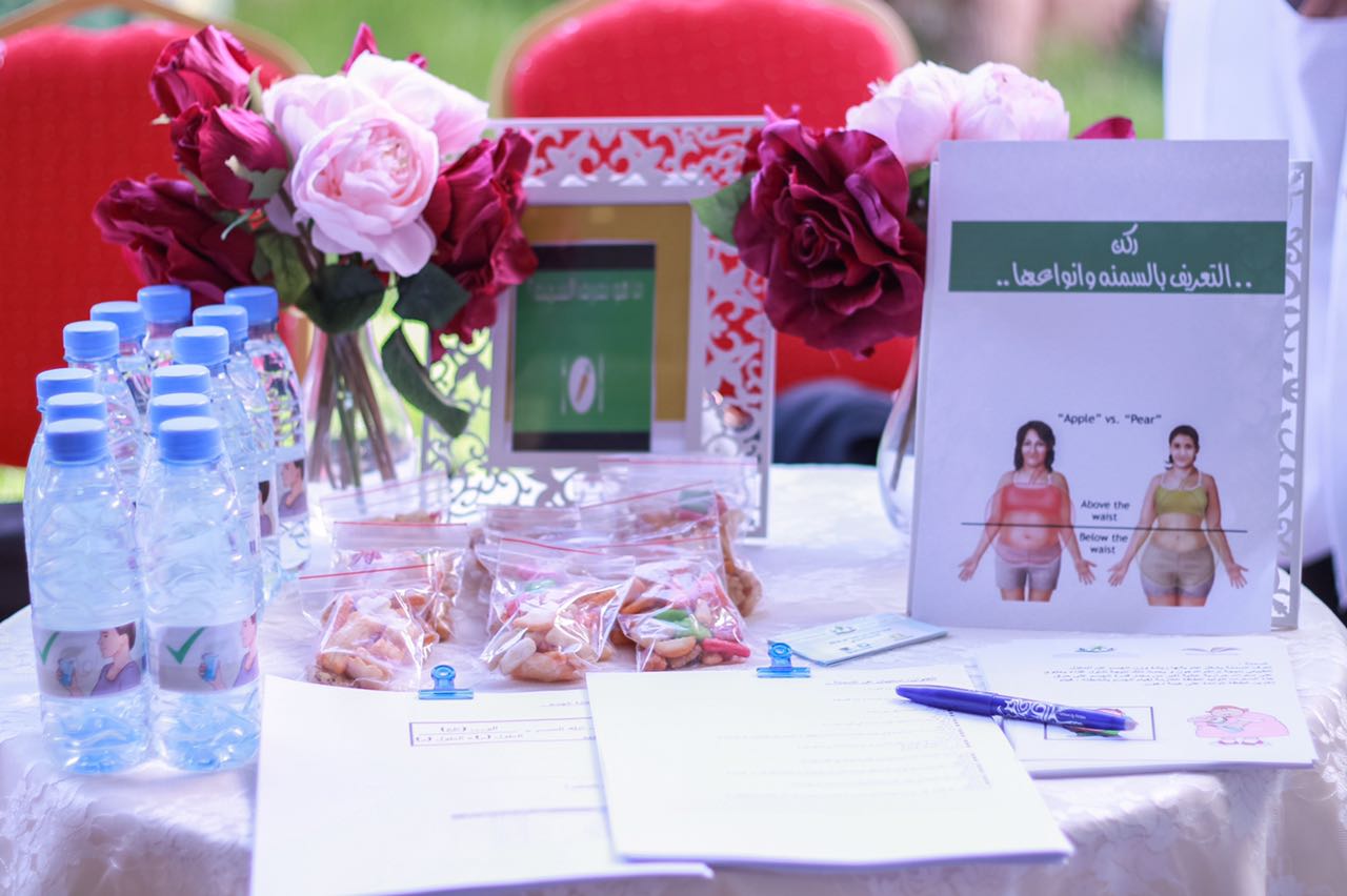 ( ركن التعريف بالسمنة وأنواعها وركن أسباب السمنة وقياس كتلة الجسم ومخاطر السمنة وبدائل صحية ) , حيث تم تنظيم مرور طالبات المدرسة على الأركان المختلفة وتبادل الأسئلة والأجوبة وسط أجواء من التفاعل والنقاشات العلمية , كما تم قياس الوزن والطول لأغلب الطالبات لمعرفة ما إذا كانت الطالبة تعاني من السمنة ام لا .