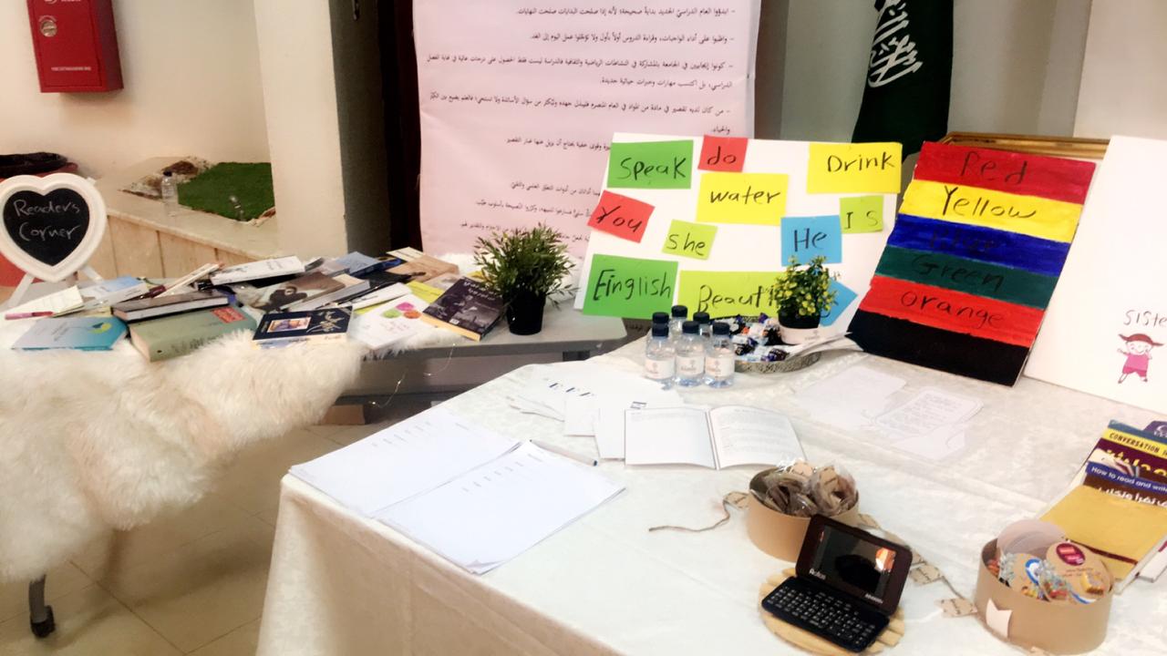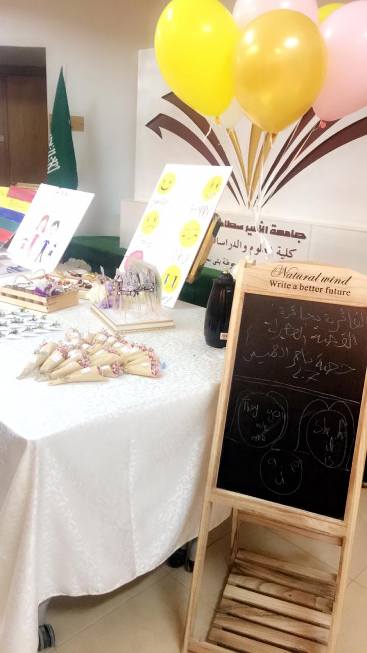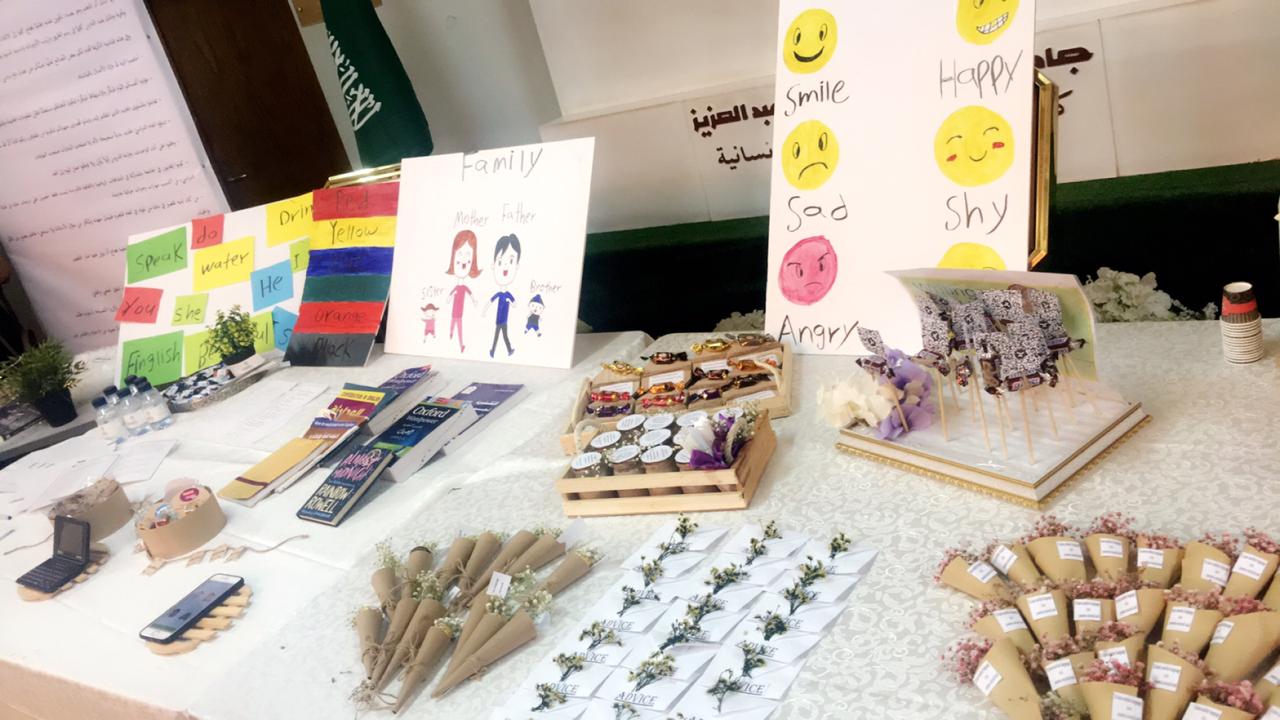 قدم نادي اللغة الانجليزية بكلية العلوم والدراسات الإنسانية بحوطة بني تميم ركن تفعيل اللغة الانجليزية وذلك في يوم الاربعاء الموافق 13 / 7/ 1440 هـ أمام مسرح الكلية. حيث تم خلاله عرض وتقديم العديد من الفقرات والمسابقات للحضور من ضمنها، ترجمة عدد من كلمات اللغة الانجليزية الى العربية وأيضاً تركيب جملة على حسب قواعد اللغة الإنجليزية. وتم تزويد الطالبات بنبذه عن تاريخ اللغة للإنجليزية وأدبه. وتم إعلان الفائزة بجائزة القصة للقصيرة باللغة الإنجليزية والتي تم الإعلان عنها من بداية الفصل الحالي.
