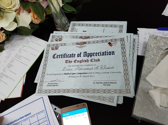 بحضور و كيلة عمادة السنه التحضيرية الدكتورة أمل بنت صالح الشمراني أقام نادي اللغة الانجليزية تحت إشراف مشرفة النادي الأستاذة آمال عصفور فعالية (مسابقة العلوم الطبية للمسار الصحي) ، وتضمنت المسابقة محتويات الكتاب الأول و شارك فيها جميع فصول المسار الصحي .