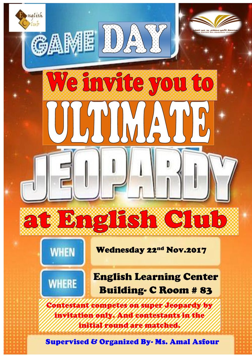 نظم نادي اللغة الإنجليزية بعمادة السنة التحضيرية وبإشراف الأستاذة آمال عصفور عدةَ ندواتٍ لتعلمِ اللغة الإنجليزية يوم الأربعاء الموافق 4/3/1439هـ وبحضور العديد من منسوبات العمادة وطالباتها.