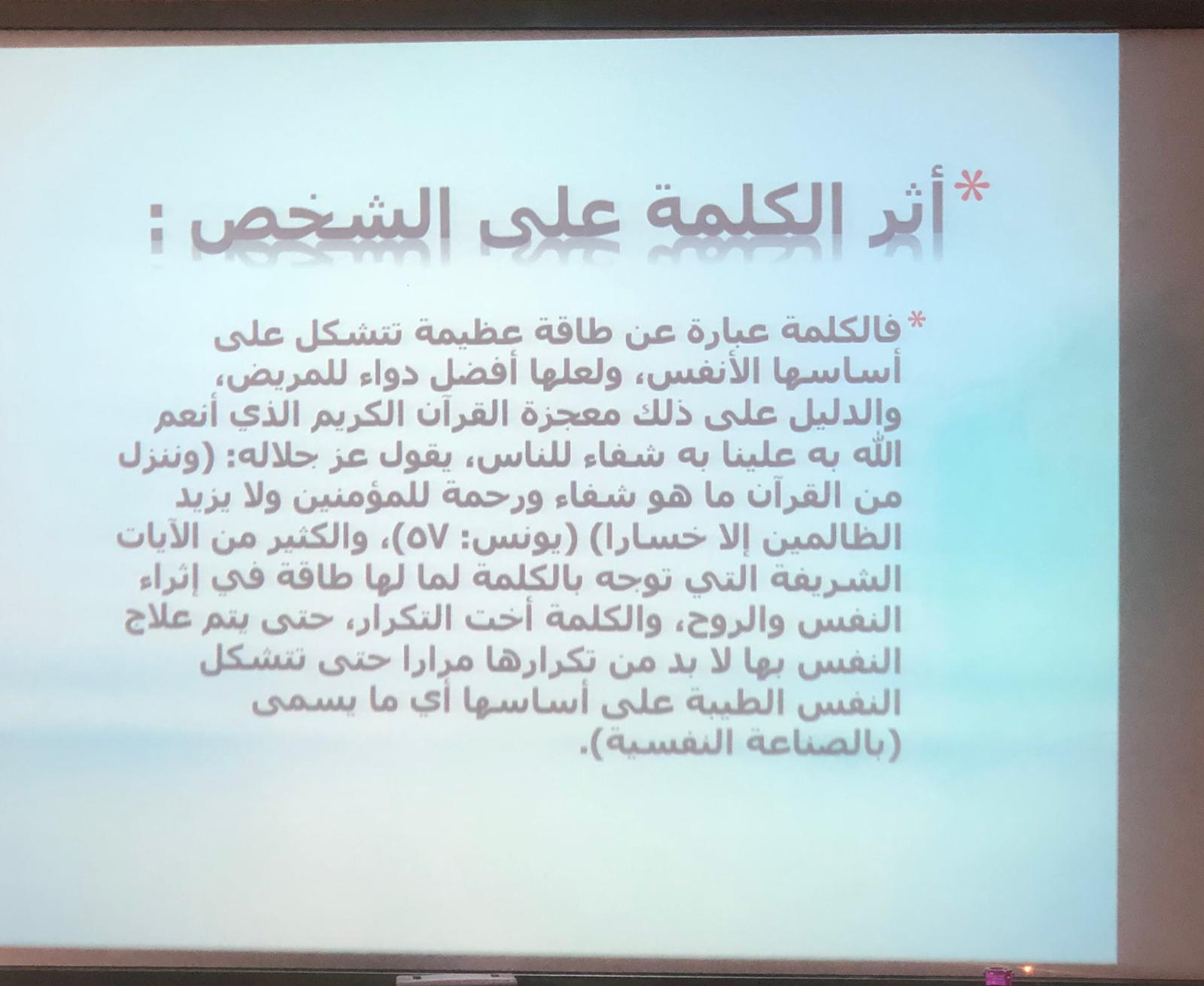 نظم نادي العلوم الأساسية بعمادة السنة التحضيرية - شطر الطالبات، ندوتين بعنوان (اصنع مسارك وأثر الكلمة على النفس )يوم الثلاثاء الموافق 1440/5/16هـ، تحت إشراف الأستاذة إقبال أحمد وبحضور منسوبات العمادة وطالباتها. هذا وتضمنت فعاليات ندوة اصنع مسارك قيام طالبات نادي العلوم الأساسية بعمل عرض توضيحي استعرضن فيه أهمية الثقة بالنفس و عدم التأثر بكلام الآخرين واخذ ما هو ايجابي منهم ولا تنظر لنفسك من خلال الآخرين وكن واثق بقدراتك. كما تضمنت ندوة أثر الكلمة على النفس قيام طالبات نادي العلوم الأساسية بعمل عرض وضحنا فيه أن الكلمات دائماً لها أثر كبير في نفوسنا وفي نفوس الآخرين، و من هذا المنبع يجب علينا دائماً الحرص في إنتقاء كلِماتنا الموجهه للآخرين، وتم توزيع بروشوراتٍ ومطوياتٍ على الحضور تحتوي على معلوماتٍ قيمة.