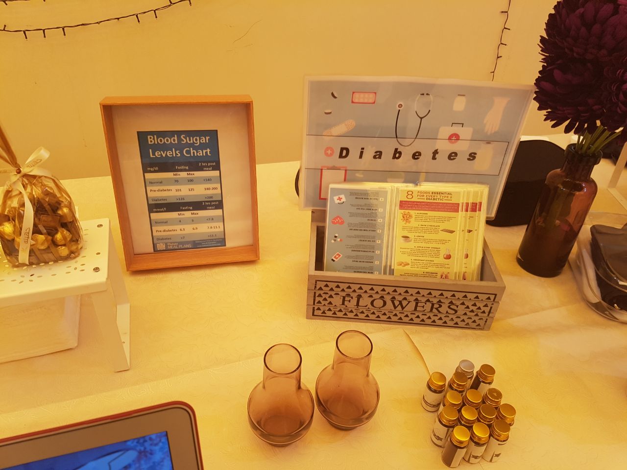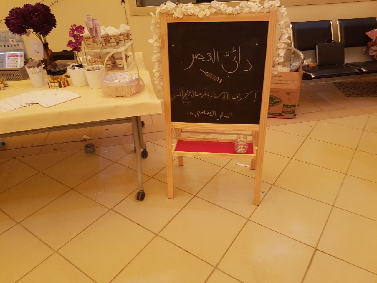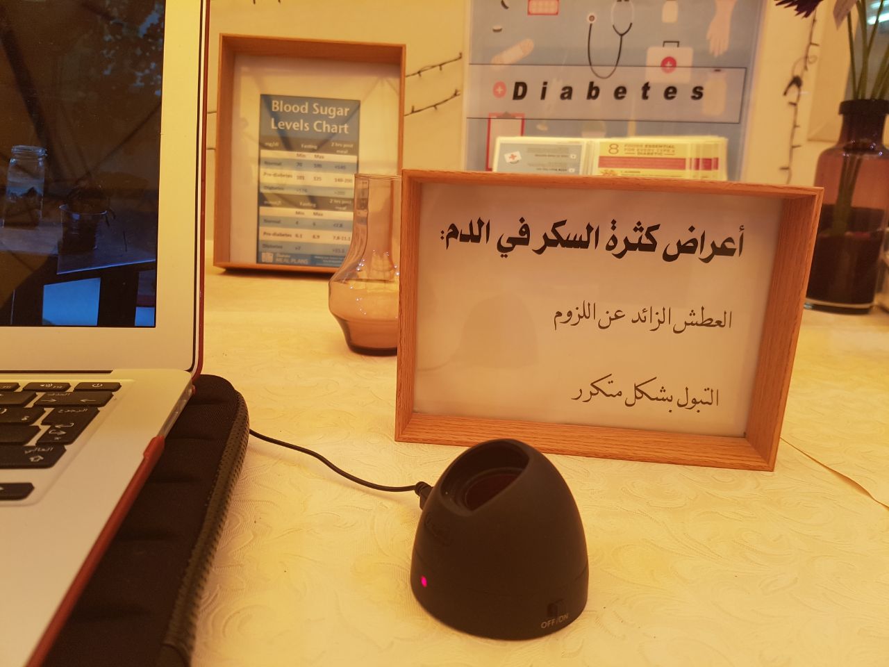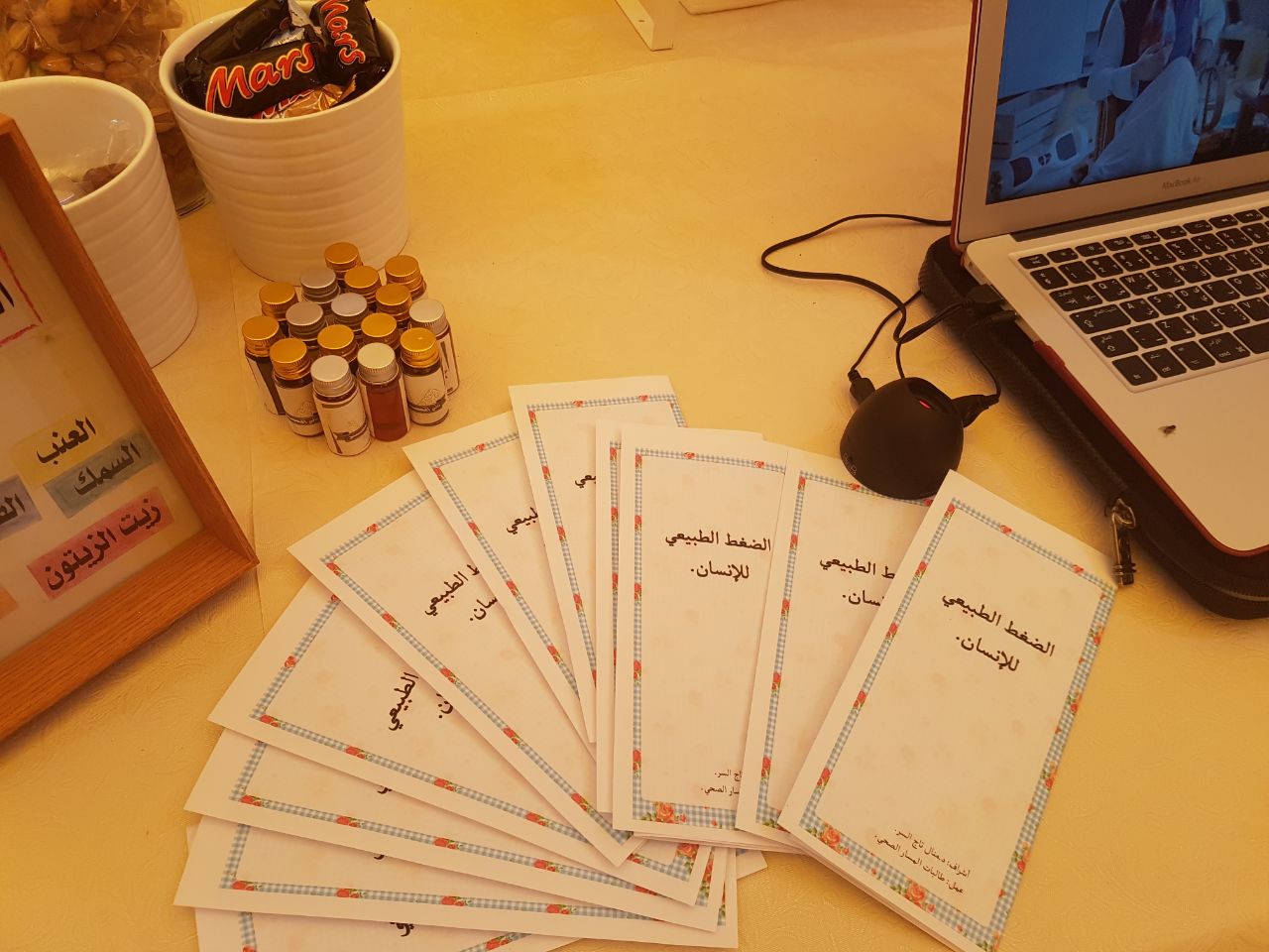 وتم توزيع بروشورات ومطويات على الحضور تحتوي على معلومات عن الأغذية المناسبة التي تحافظ على مستوى السكر في الدم والتي على إثرها لاقت إعجاب واستحسان الحضور.
