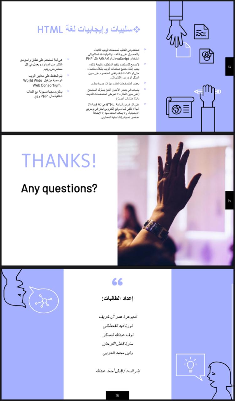 تعتبر لغة HTML من اهم اللغات المستخدمة لبناء أي موقع الكتروني، وتصنف بلغة برمجة ولغة ترميز وهي سهلة لعدم احتوائها على قوانين وقواعد اللغات البرمجية ويعود أهمية اللغة الى استخدامها في بناء الهيكل الأساسي للمواقع الالكترونية فهي تمثل جذر الموقع، لذلك نظم نادي العلوم الأساسية بعمادة السنة التحضيرية - قسم الطالبات فعالية بعنوان (لغة البرمجة HTML) بإشراف د. أقبال أحمد وذلك يوم الاربعاء الموافق 1442/8/18هـ من خلال منصة برنامج zoom. ابتدئ اللقاء بمقدمة تعريف لـ HTMLومخترعها وفوائدها وتاريخ تطورها وكيفية عملها وعلاماتها وايجابياتها وسلبياتها خصائصها ومميزاتها واستخداماتها وقد تم عرض فيديو يوضح كيفية العمل واستخدام العلامات المستخدمة وقد اثنى الحضور على هذه المحاضرة لما تحمله من فوائد ومعلومات قيمة.