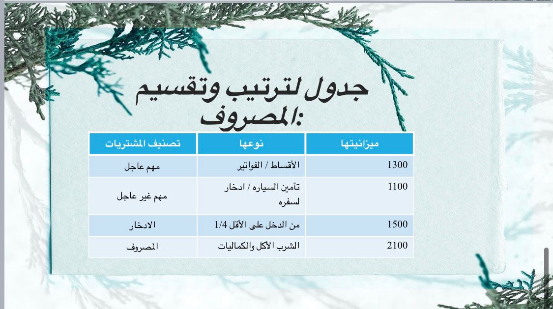 - عمل جدول لترتيب وتقسيم المصروف