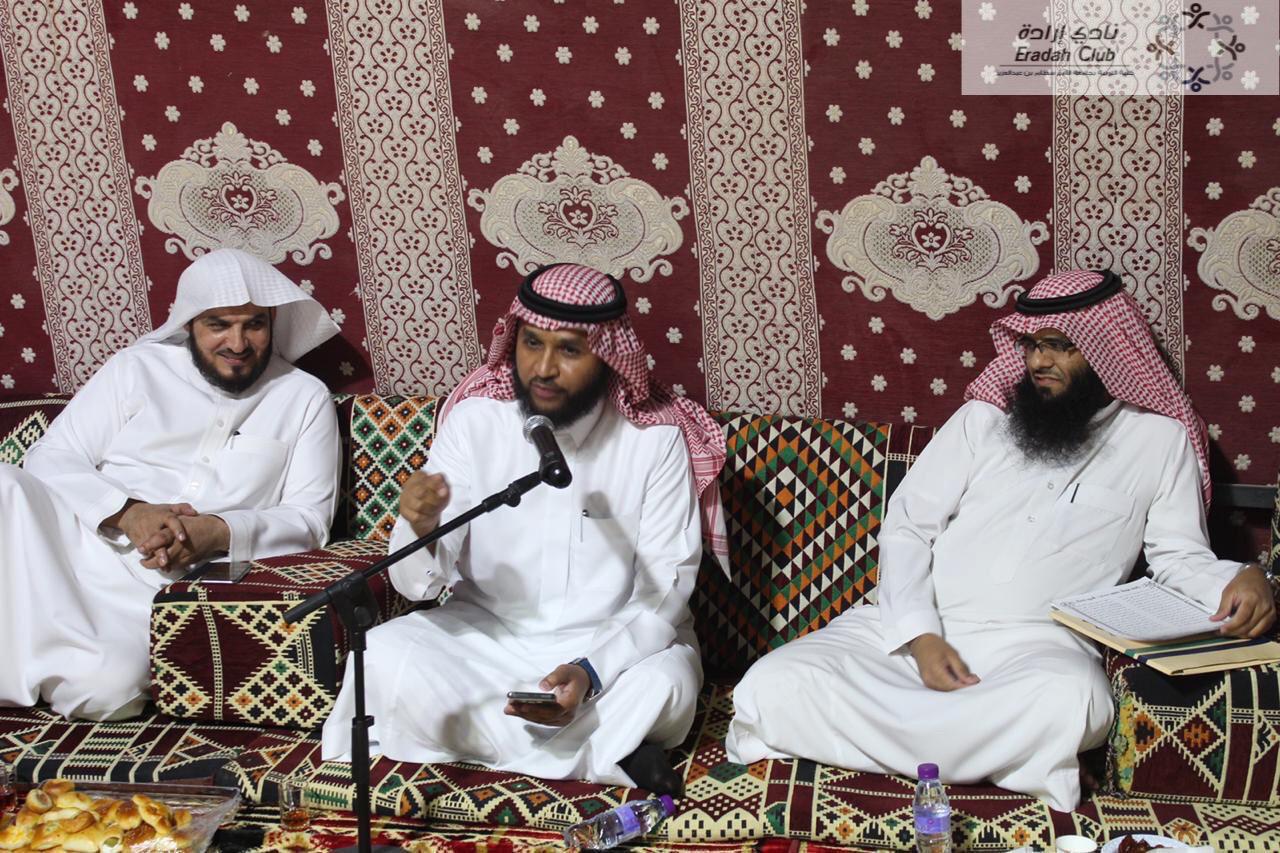 حضر اللقاء سعادة عميد الكلية الدكتور عبد الرحمن بن عبيد الرفدي وعدد كبير من أعضاء هيئة التدريس والقيادات بالجامعة، منهم سعادة الدكتور حسين الربيعي وكيل الدراسات العليا، وسعادة الدكتور محمد المقبل رئيس نادي إرادة، وسعادة الأستاذ راشد العسكر مدير الأنشطة الطلابية بالجامعة.