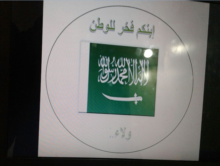 ومن بعدها قدمت مجموعة من الطالبات ( زينب السيف – ريوف الخيبري – ربى الذياب – بشائر الأنصاري – موضي الهواشلة – ريم التميمي – أمجاد العتيبي ) أوبريت عن الولاء للوطن ، ثم كلمة عن الإرهاب ألقتها الطالبة نورة المعيبد .