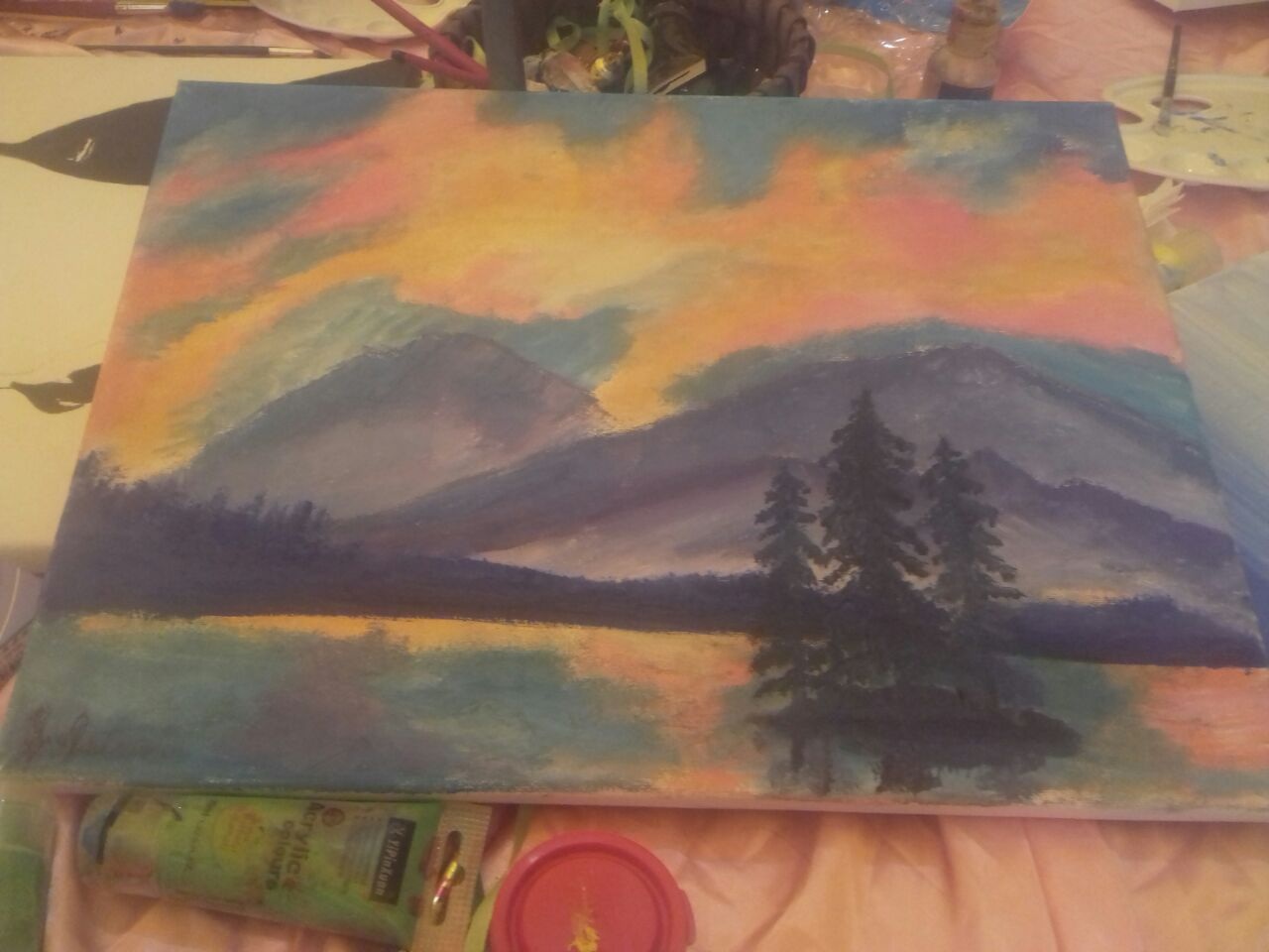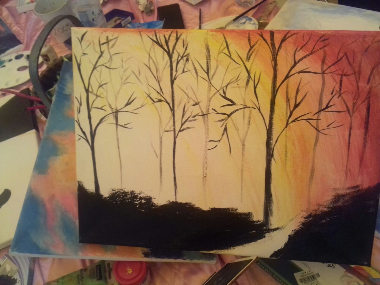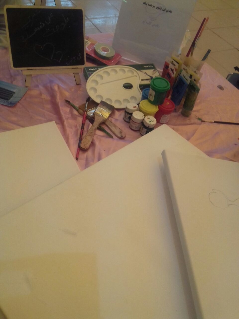 حيث قامت الطالبات بوضع إشارات ونقاط وخطوط بشكل عام على لوحات الكانفس وقامت الطالبات ذوات المواهب بإكمال اللوحة حسب ما تحركت به أنفسهن، وقد لقيت الورشه اقبالاً جميلاً من الطالبات نتج عنها مجموعة طيبة من اللوحات الرائعة .