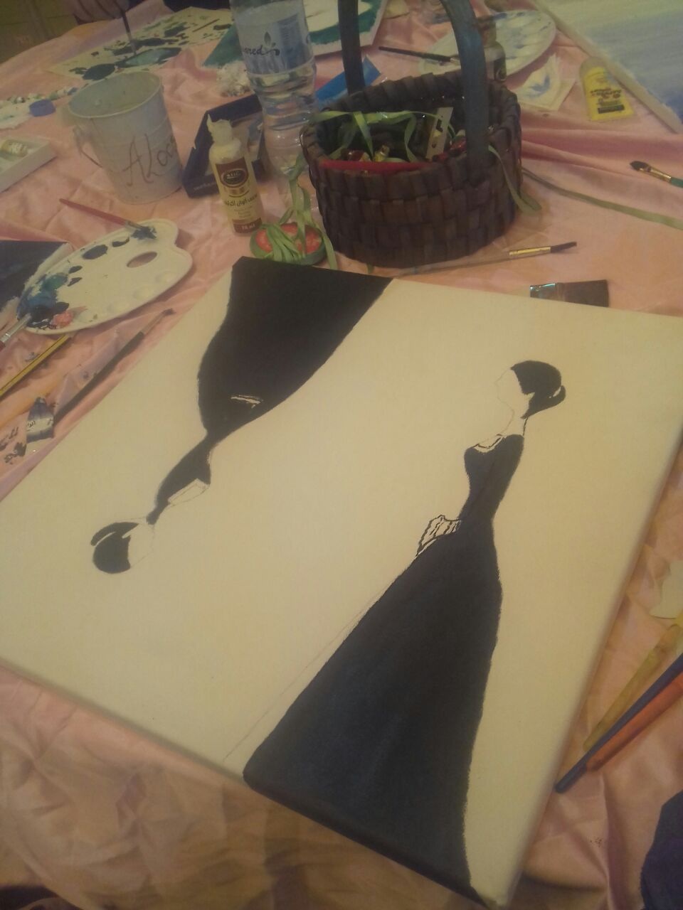 نظم نادي فن ونون للإبداع بإشراف الأستاذة علا قرعان ورشة فنية بساحة العمادة بعنوان" اكملي ما بدأت....من رسم"