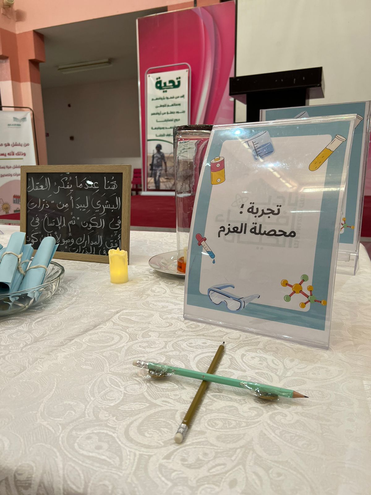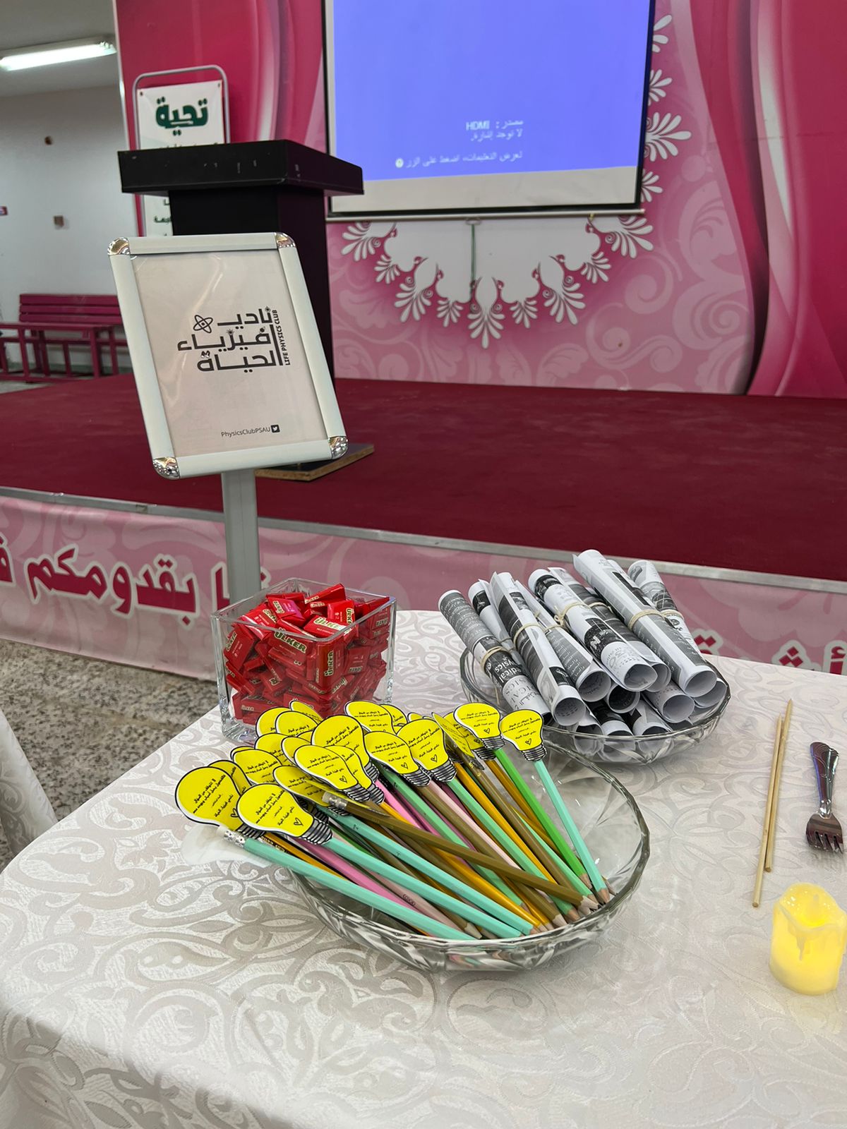حيث شهدت هذه الورشة تجارب فيزيائية أعدها أعضاء نادي فيزياء الحياة لطالبات المرحلة الثانوية من التعليم العام.