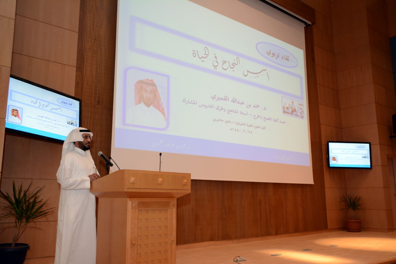 بتنظيم عمادة السنة التحضيرية ممثلة بنادي حاضرين الطلابي عقدت اليوم الأربعاء الموافق 29 / 6 / 1440هـ لقاء بعنوان " أسس النجاح في الحياة " قدمها الدكتور حمد بن عبدالله القميزي عميد كلية المجتمع بجامعة الأمير سطام بن عبد العزيز